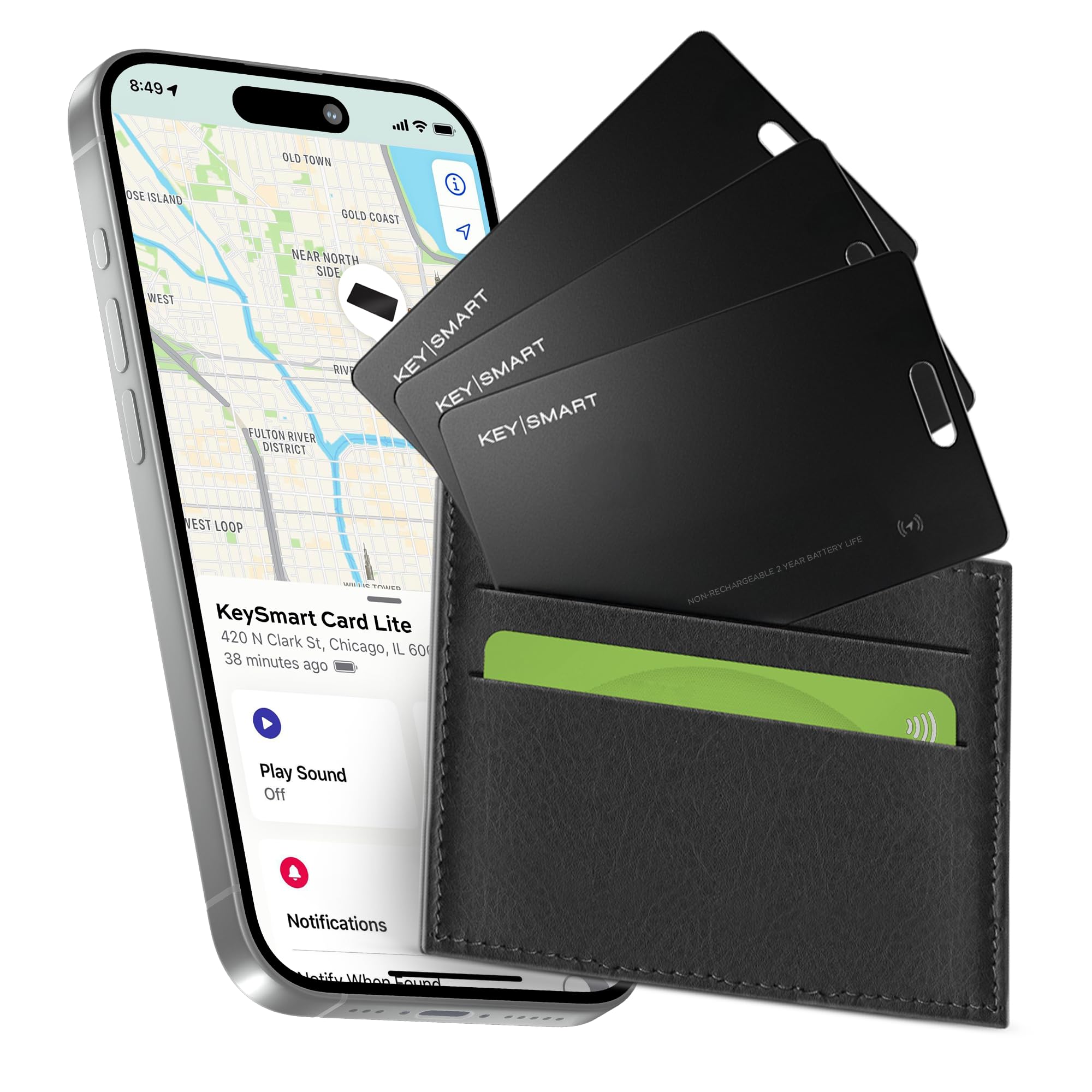 KeySmart SmartCard Lite – Tarjeta de seguimiento de cartera, compatible con Apple Find My App, batería no recargable de 2 años, bu