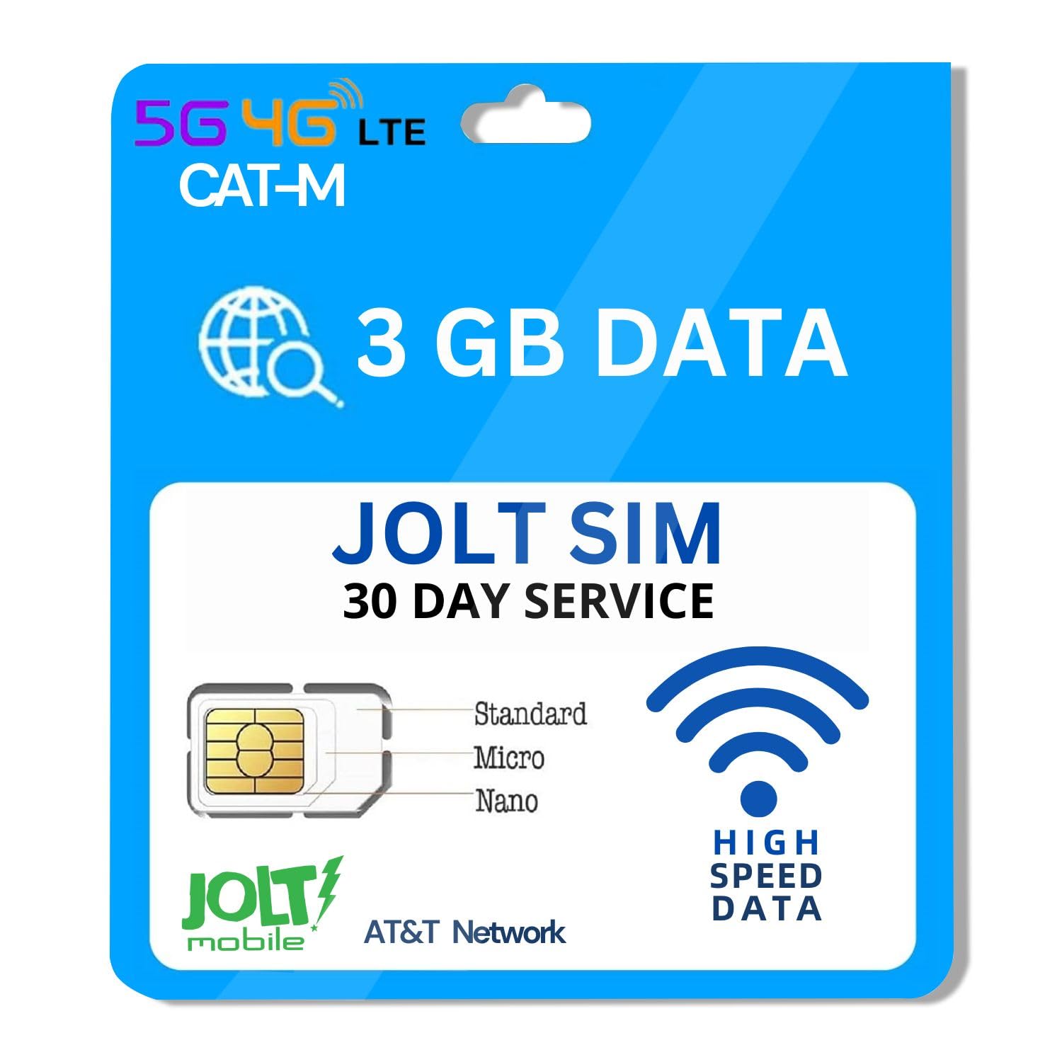Jolt Mobile $12.00-3GB Plan de datos en la tarjeta SIM de red AT&T 5G 4G LTE para uso empresarial-oficina-hogar – Tarjeta SIM de t