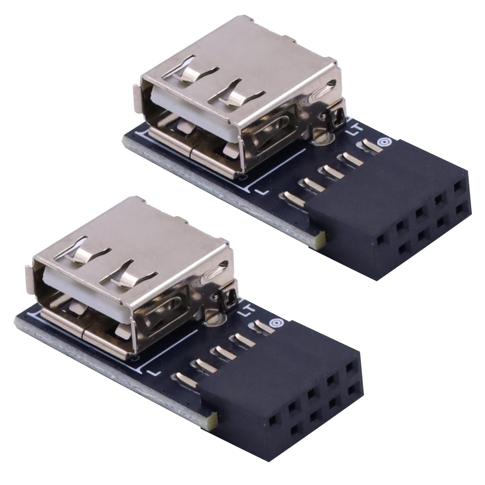 Poyiccot USB 2.0 9pin hembra placa base cabecera a doble USB 2.0 tipo A puerto, 90 grados de ángulo izquierdo USB interno adaptado