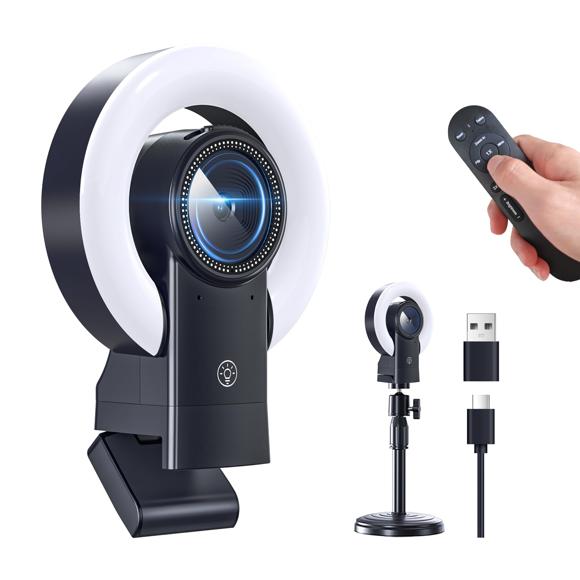 Angetube Cámara web de 1080p con anillo de luz para transmisión: cámara web USB 60FPS con micrófono-HDR-habilitado-HD Cámara web d
