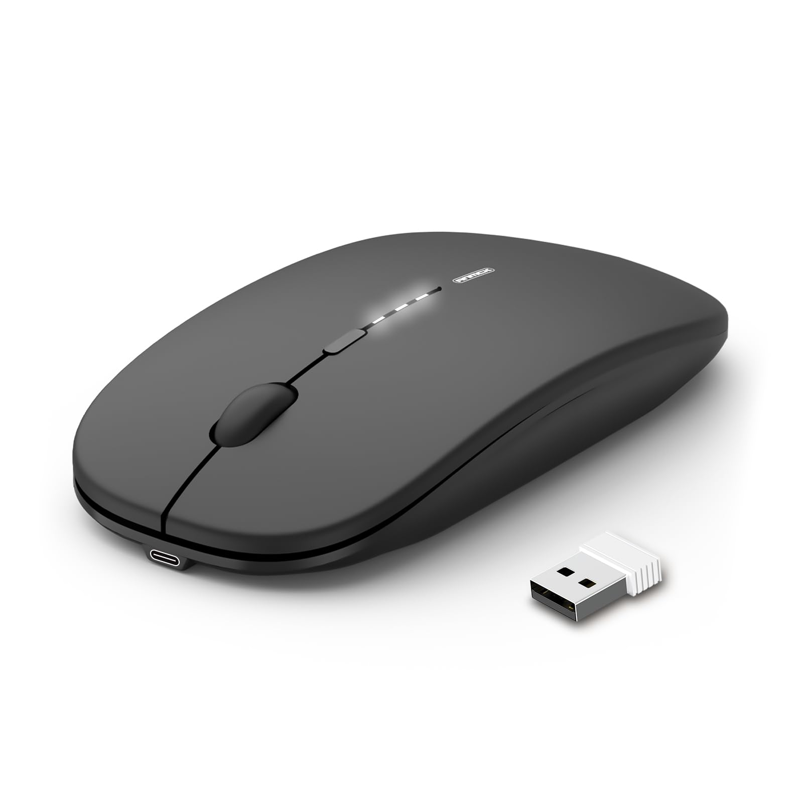 Mouse inalámbrico recargable, [nivel de batería visible] Ratón portátil silencioso ultra delgado de 2.4 G, 4 DPI ajustables 800/10