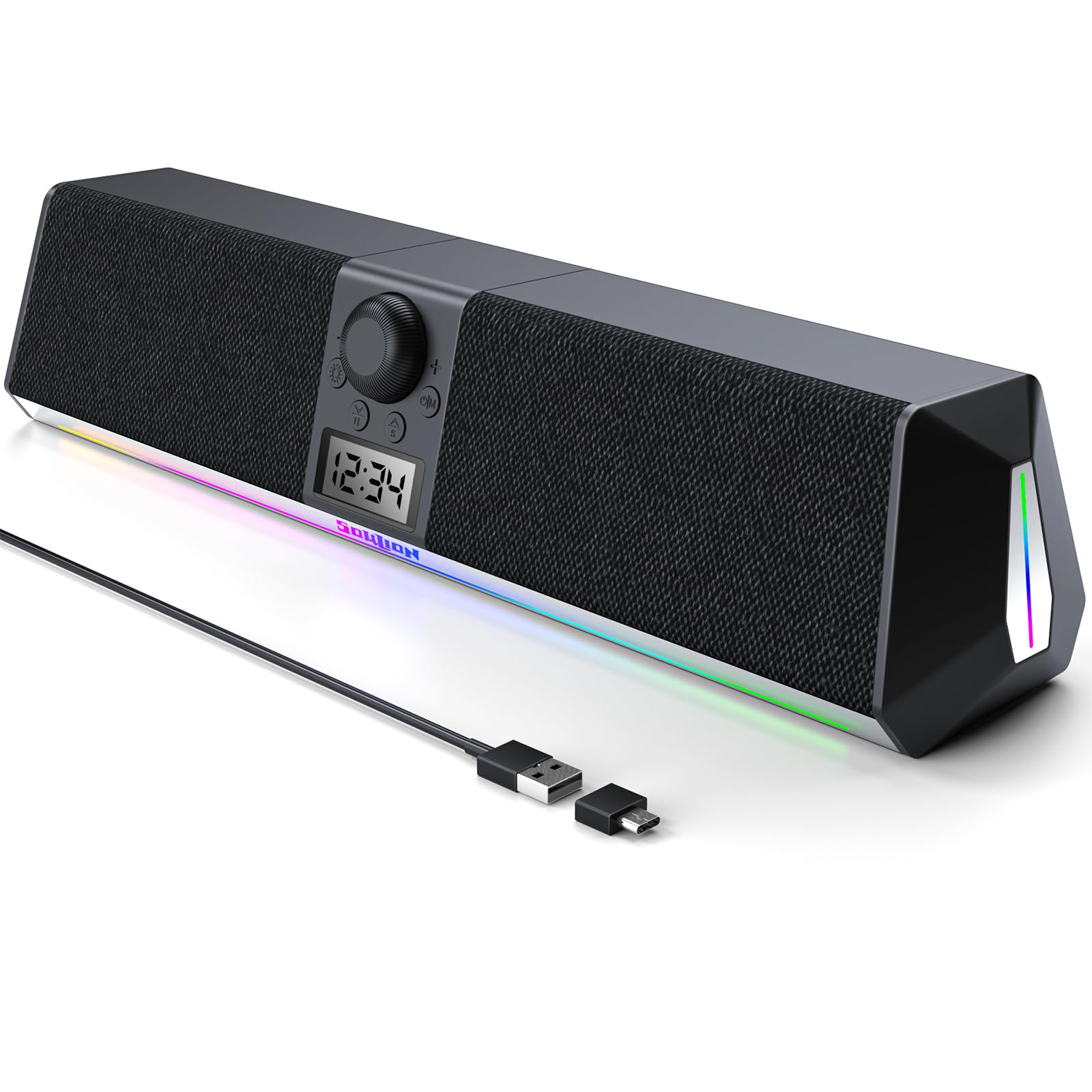 SOULION R80 Altavoces de computadora Bluetooth, USB Plug & Play Altavoces de PC con pantalla de reloj digital, barra de sonido tra
