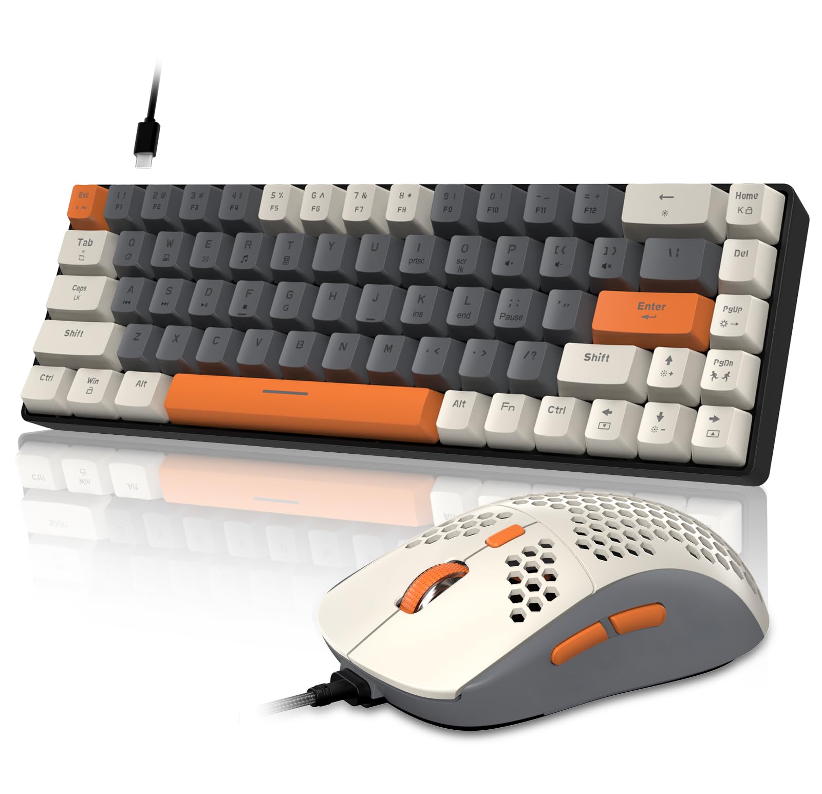 LexonElec Combo de teclado y mouse para juegos 60% RGB, teclado mecánico con cable, diseño compacto TKL de 68 teclas, mouse para j