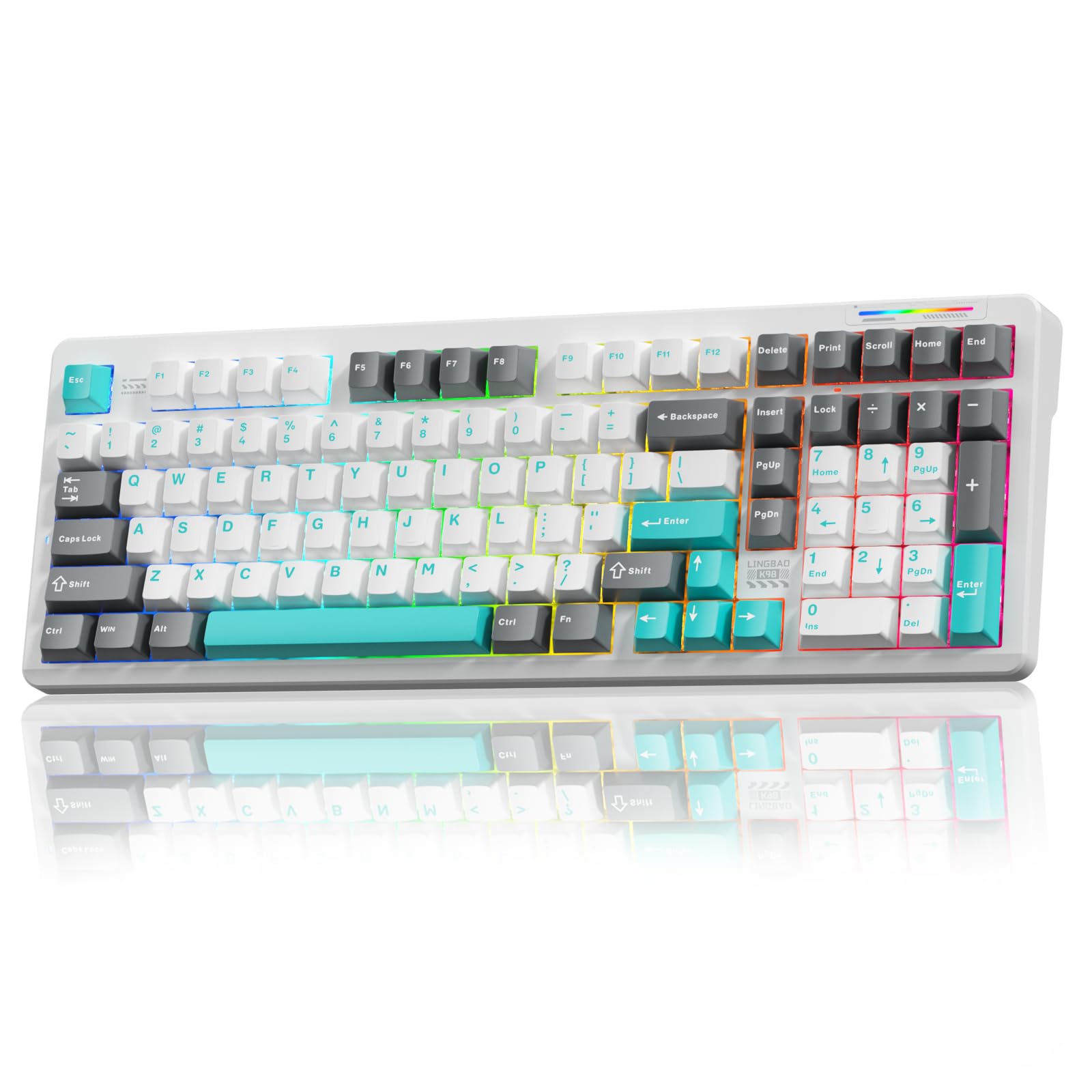 LINGBAO K98 Teclado mecánico para juegos, teclado inalámbrico de batería de 5000 mAh