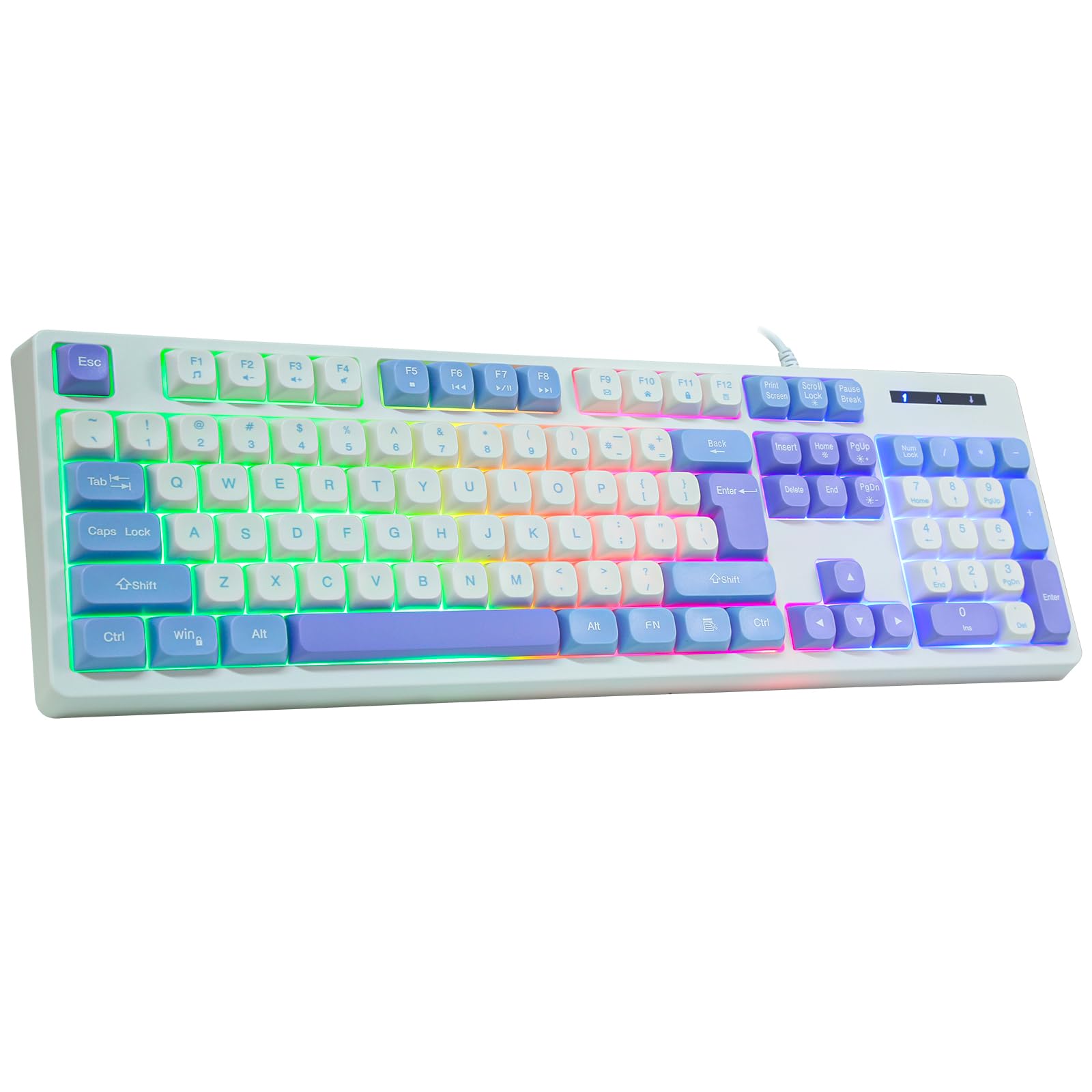 HUO JI Teclado para juegos con cable con retroiluminación LED arcoíris, teclas flotantes, sensación mecánica, resistente a derrame