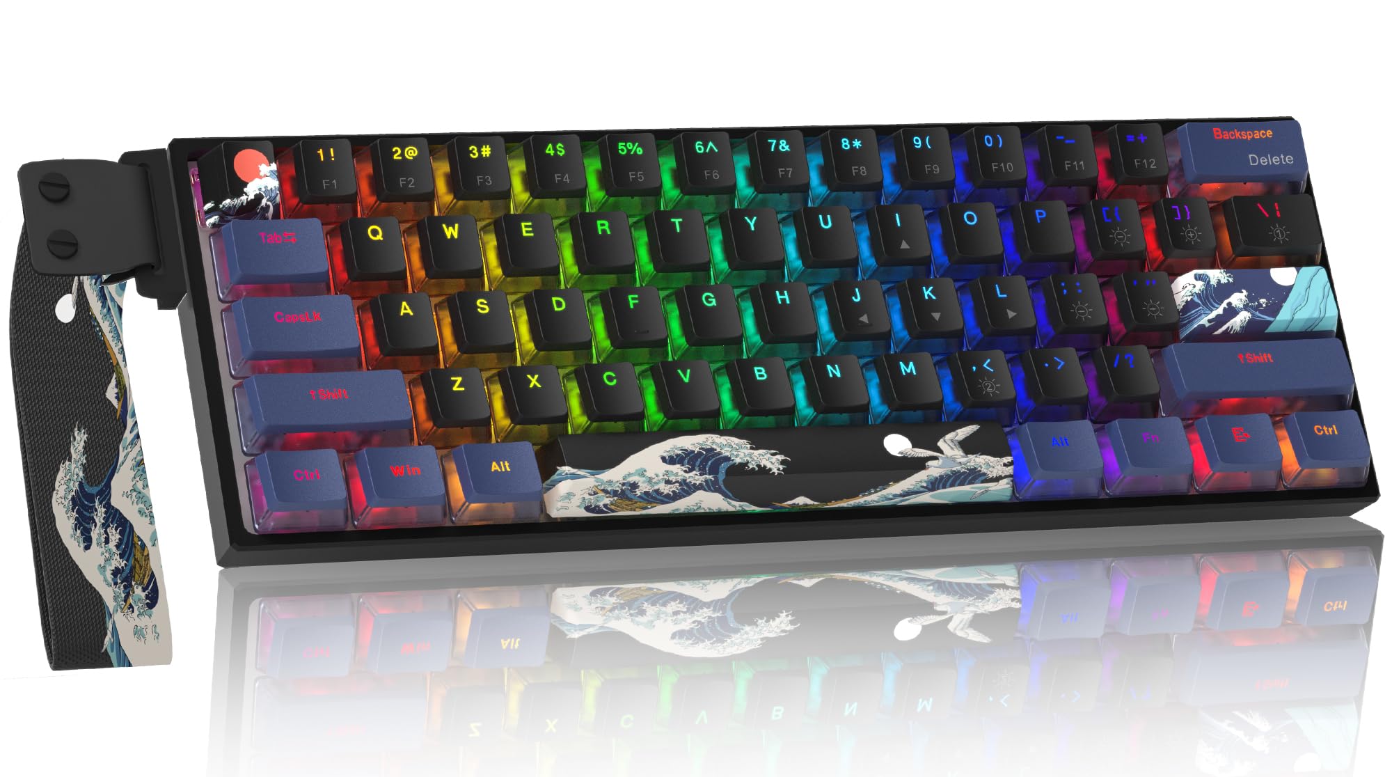 COSTOM WK61 PRO – Teclado mecánico con cable Kanagawa negro con correa retroiluminada RGB, teclas PBT de pudín de anime, interrupt