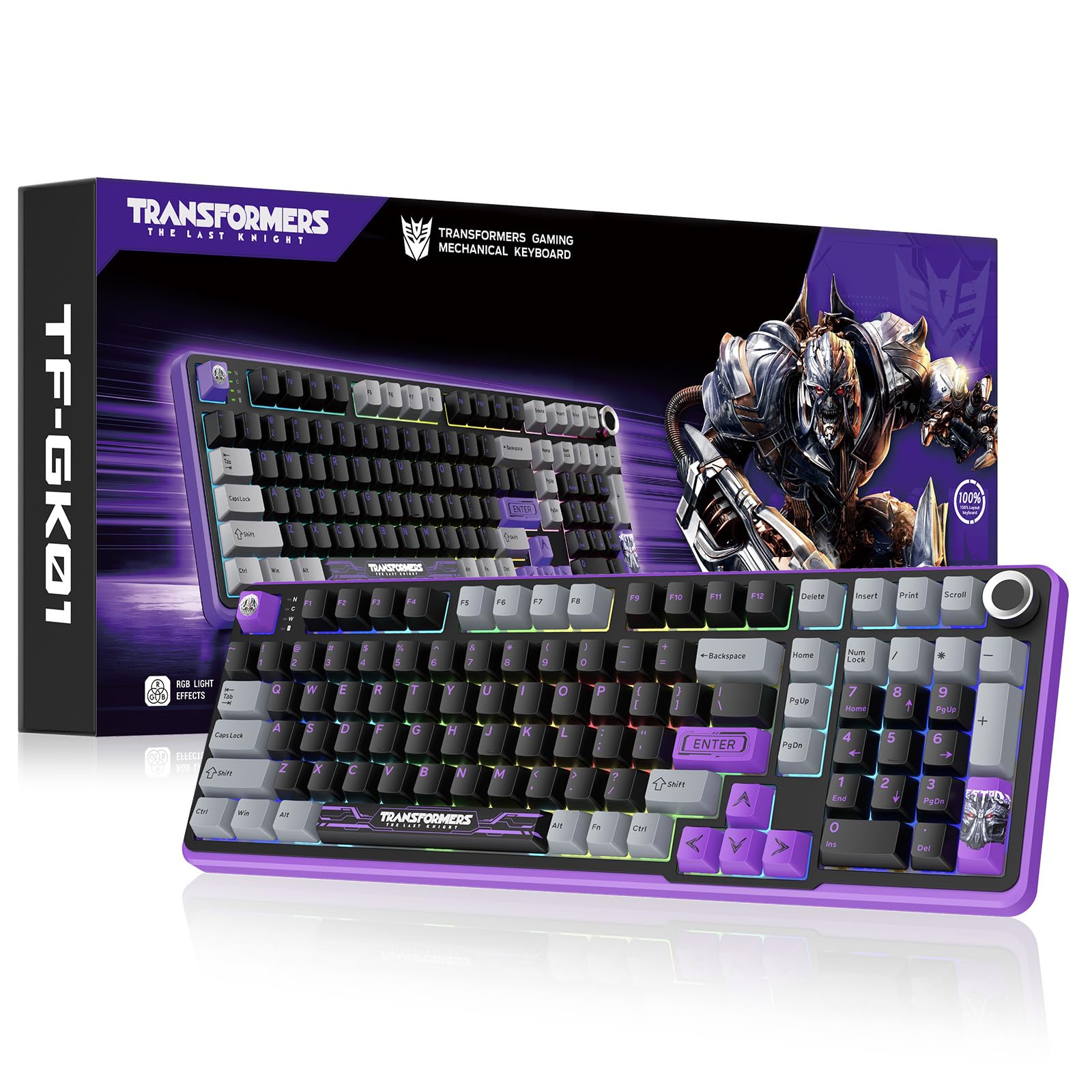 Transformers GK01 Teclado mecánico inalámbrico con perilla, 101 teclas RGB cremoso teclado para juegos, BT5.0/USB-C/2.4GHz, interr