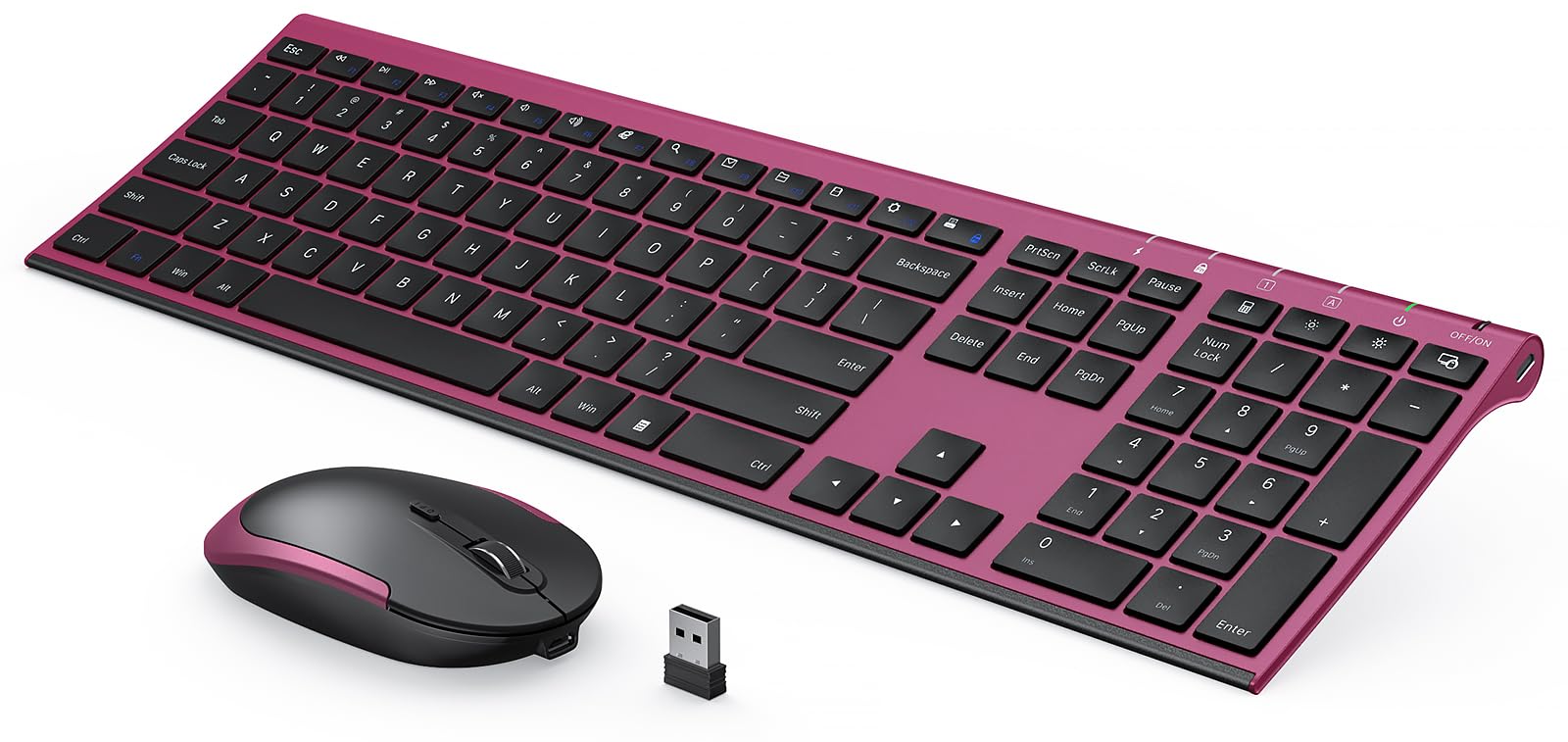 Vssoplor – Teclado y mouse inalámbricos, 2.4 GHz, recargable, compacto, silencioso, de tamaño completo, combo con receptor Nano US