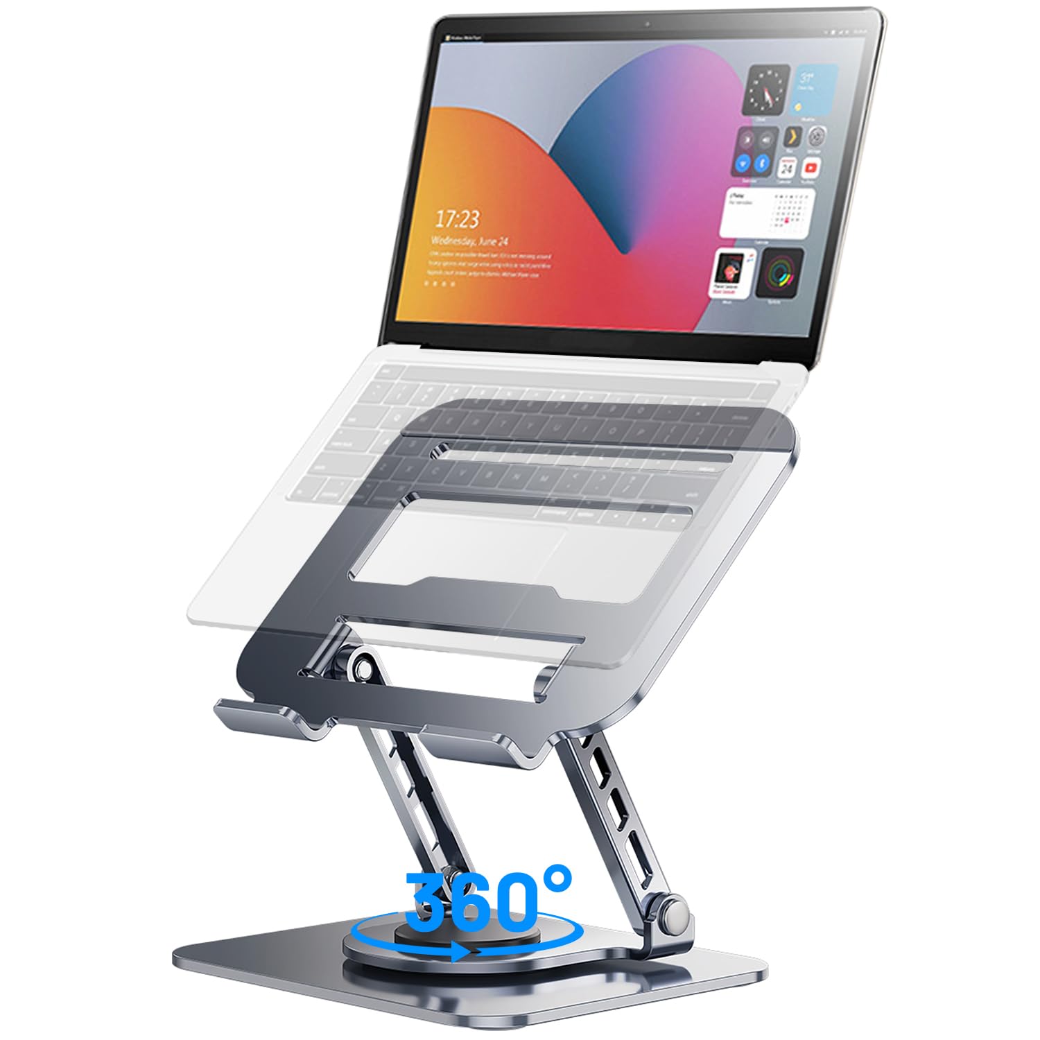 OMOTON Soporte para computadora portátil con base giratoria de 360°, elevador ergonómico para laptop para trabajo colaborativo, fá