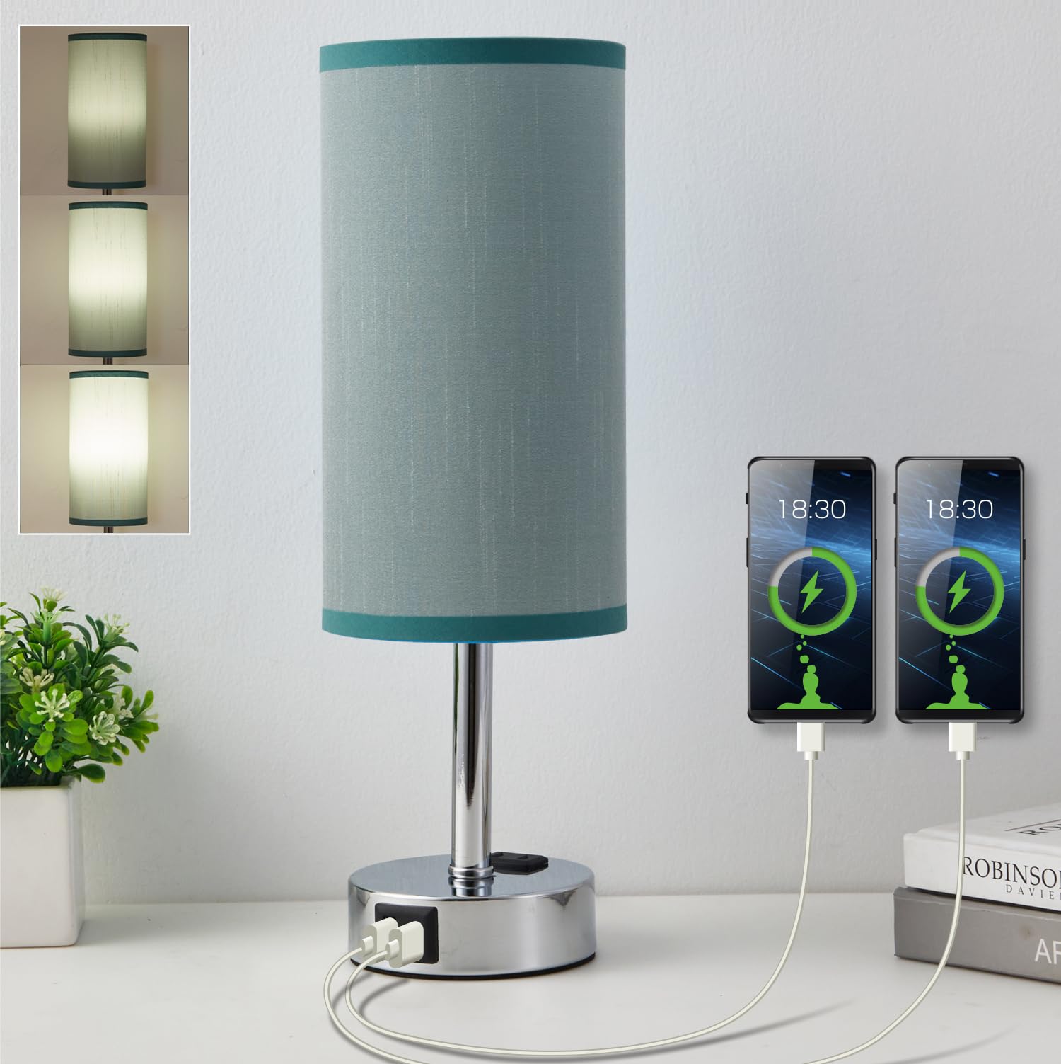 20.25 pulgadas – Lámpara de mesa para sala de estar, dormitorio, moderna lámpara de noche de cerámica con puerto de carga USB, lám