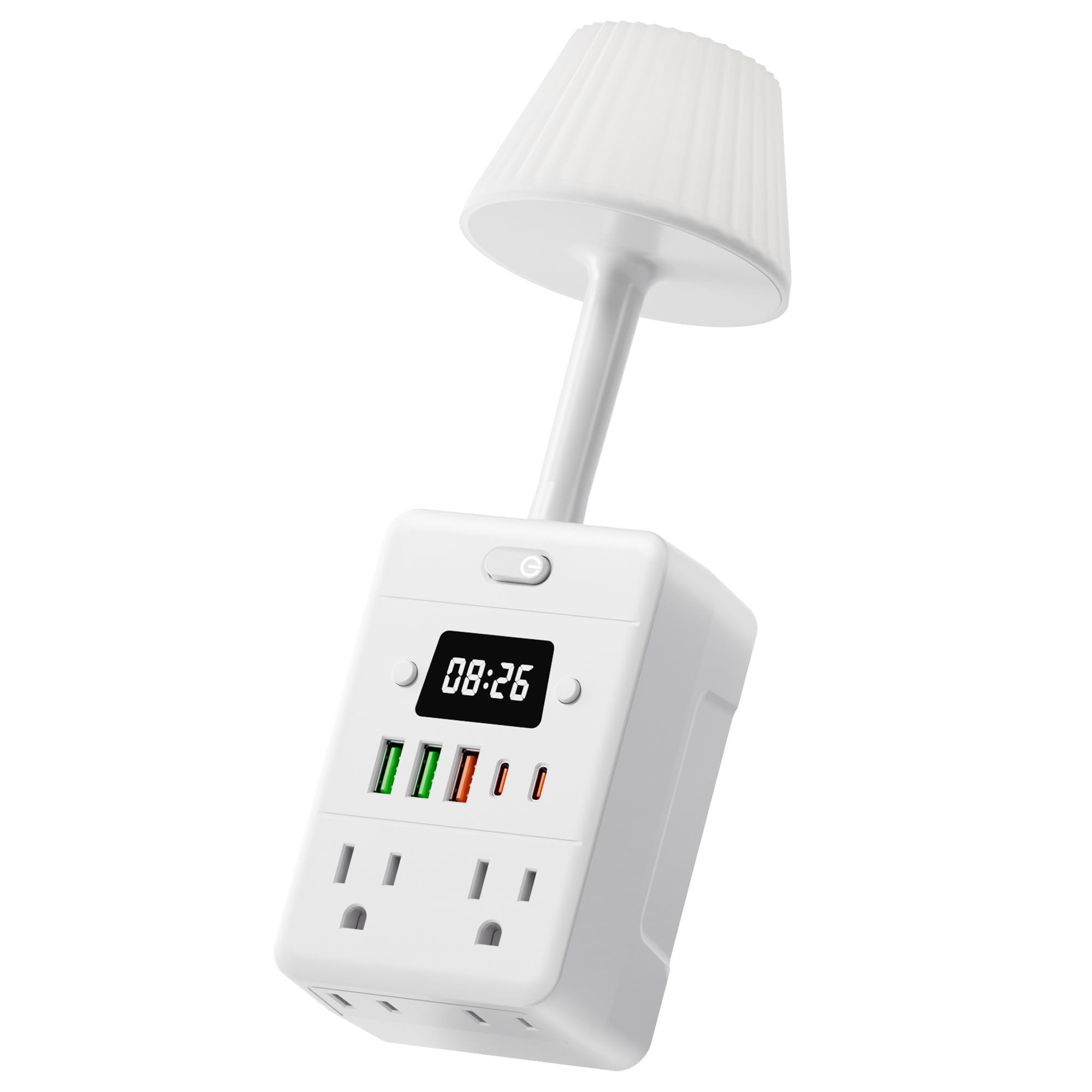 Regleta protectora de sobretensiones con lámpara y reloj digital, extensor de toma de pared con 4 tomas, 5 puertos USB (2 USB C),