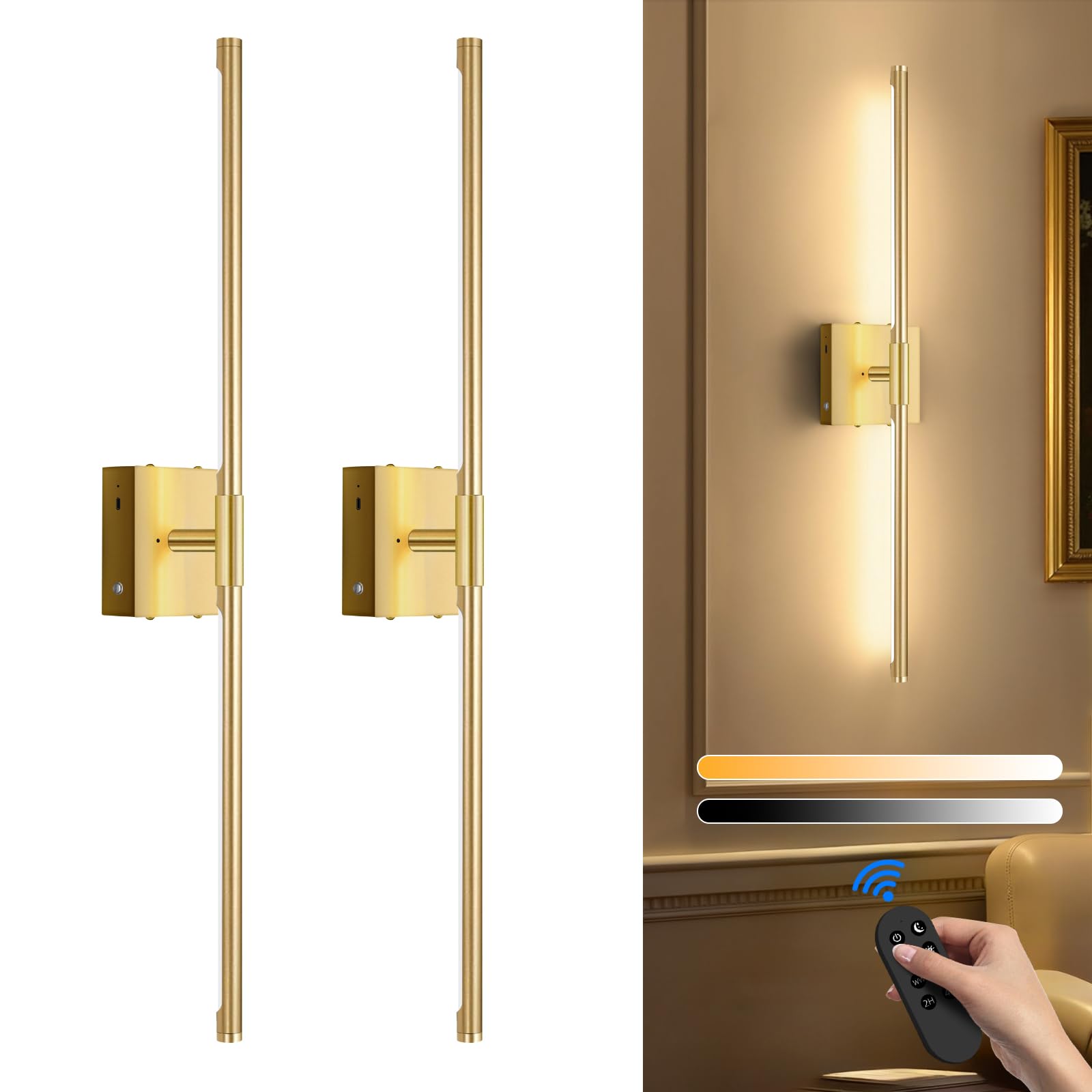 Juego de dos apliques de pared que funcionan con pilas, luces de pared inalámbricas recargables por USB con control remoto, 8000 m
