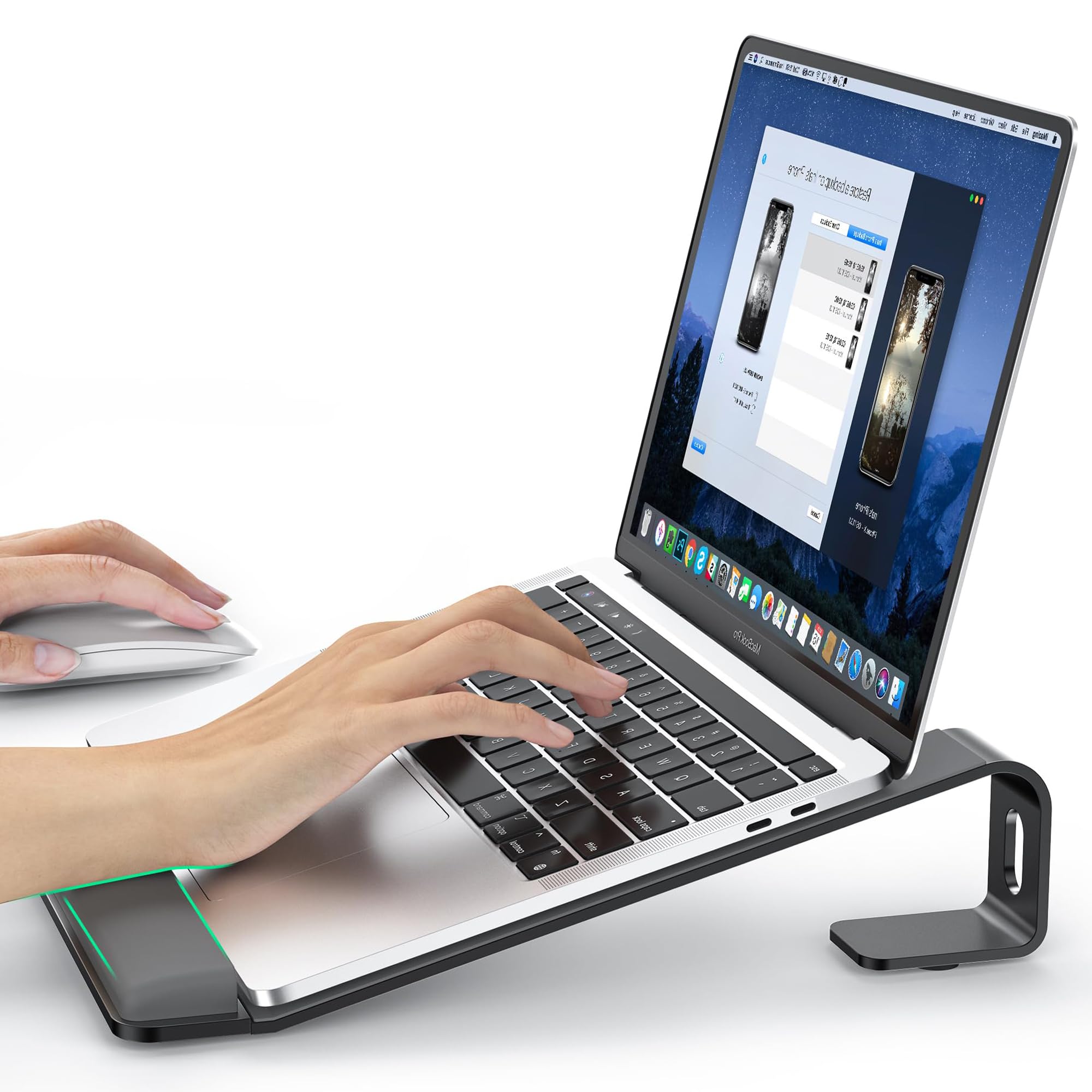 Soporte para computadora portátil para escritorio, soporte para laptop con soporte de muñeca, elevador ergonómico desmontable para