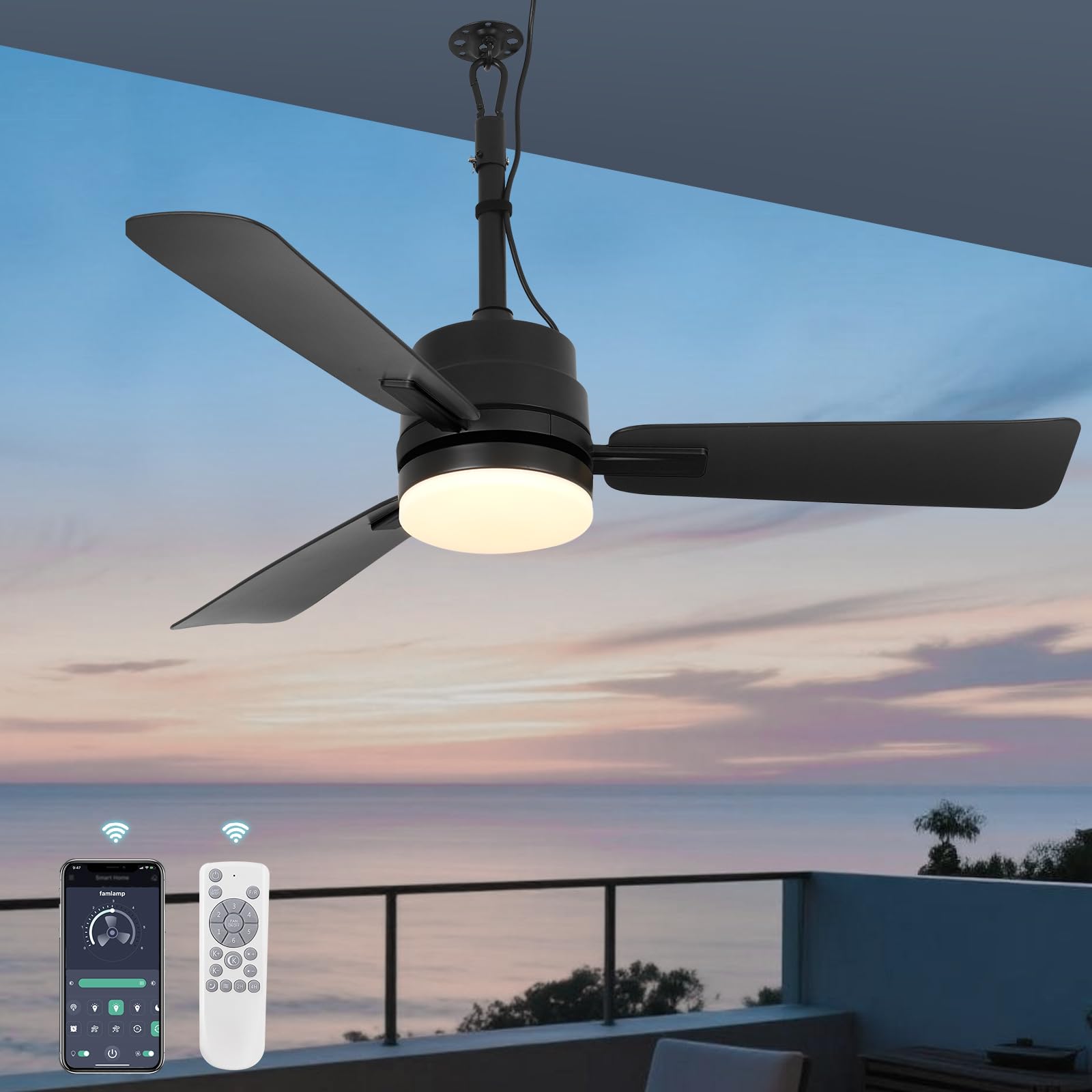 Ventiladores de techo para exteriores de 42 pulgadas con luces y control remoto, ventilador de glorieta colgante, ventilador de te