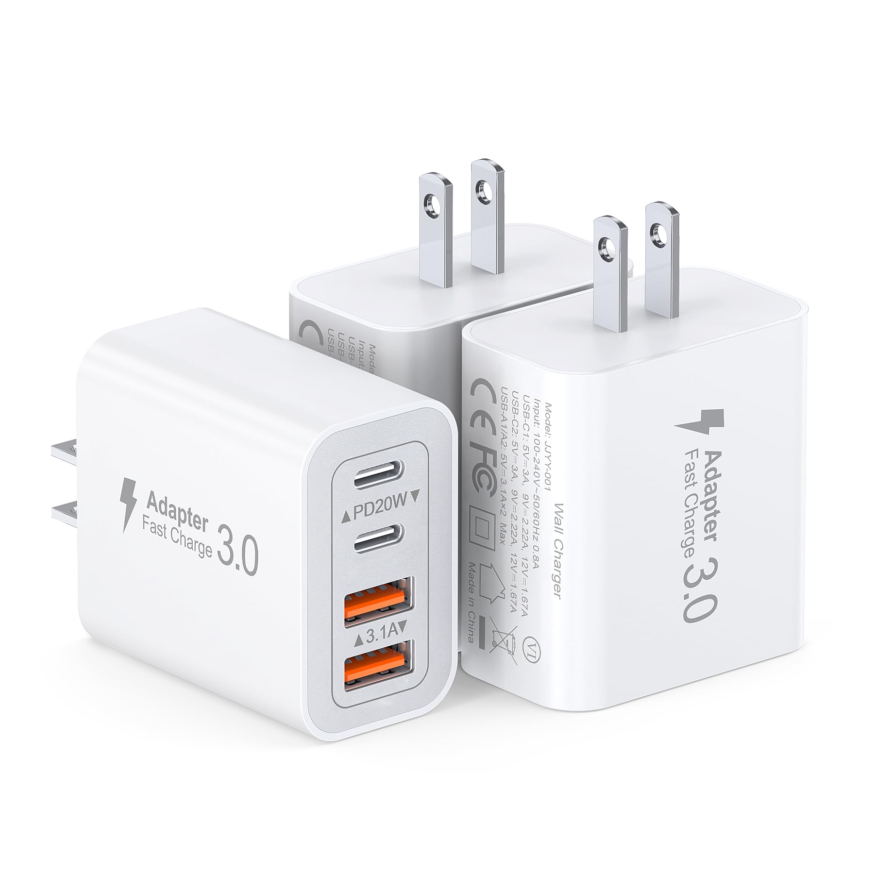 CSODINCE Paquete de 3 bloques de carga rápida, 40 W 4 puertos cargador cubo de alimentación de ladrillo adaptador base para iPad/P