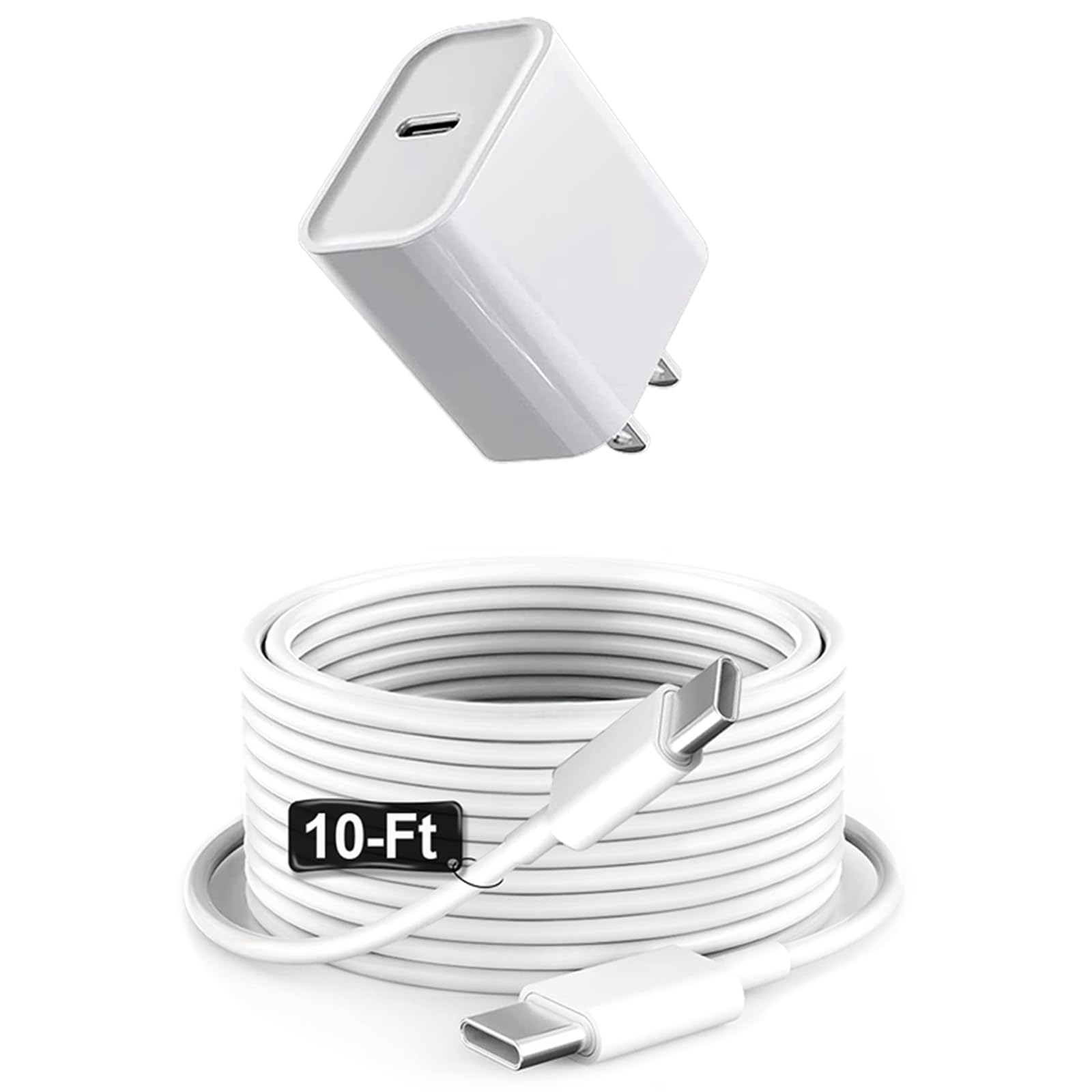 iPad Chrager – Carga rápida para iPad USB C, bloque de 20 W y cable USB C a C de 10 pies, 1 unidad, color blanco