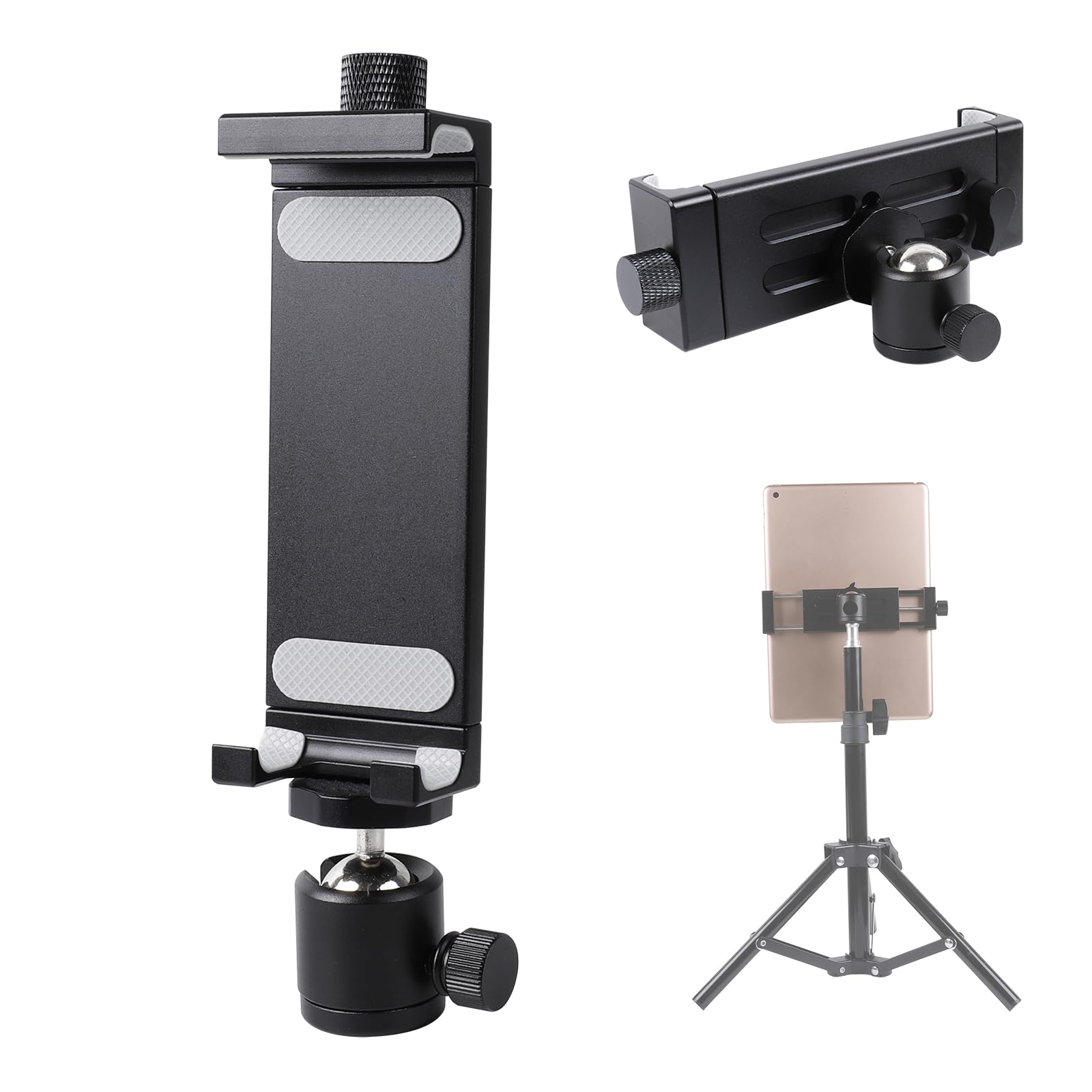Adaptador de montaje de trípode de aluminio – Soporte giratorio para tableta para iPad/Mini, Pro, Samsung Tab y otras tabletas de