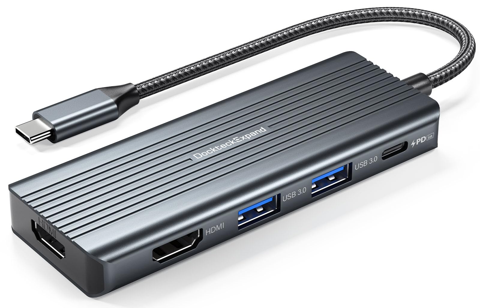 Adaptador USB C a HDMI, adaptador de monitor doble, concentrador DockteckExpand 5 en 1 con 2 HDMI 4K, 2 USB 3.0, carga PD de 100 W