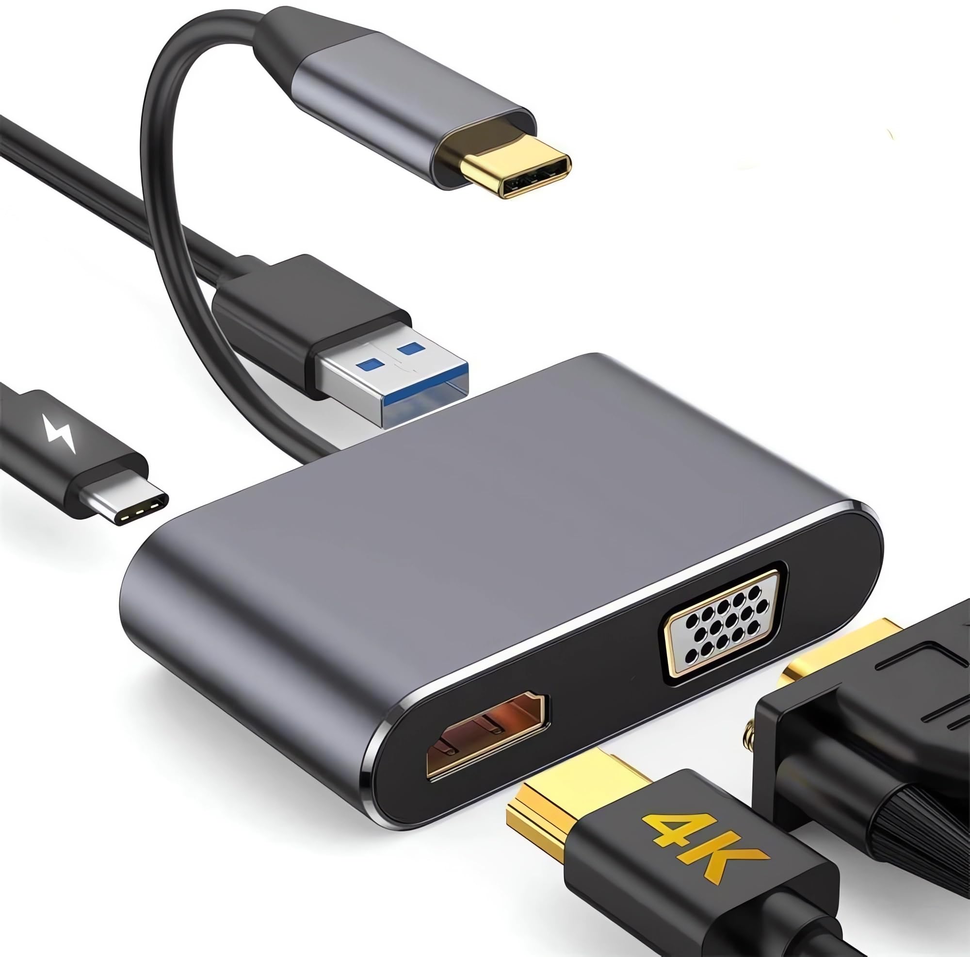 Adaptador USB C a HDMI VGA, adaptador HDMI tipo C a 4K con PD de 100 W y USB 3.0 puerto convertidor AV digital multipuerto y VGA p