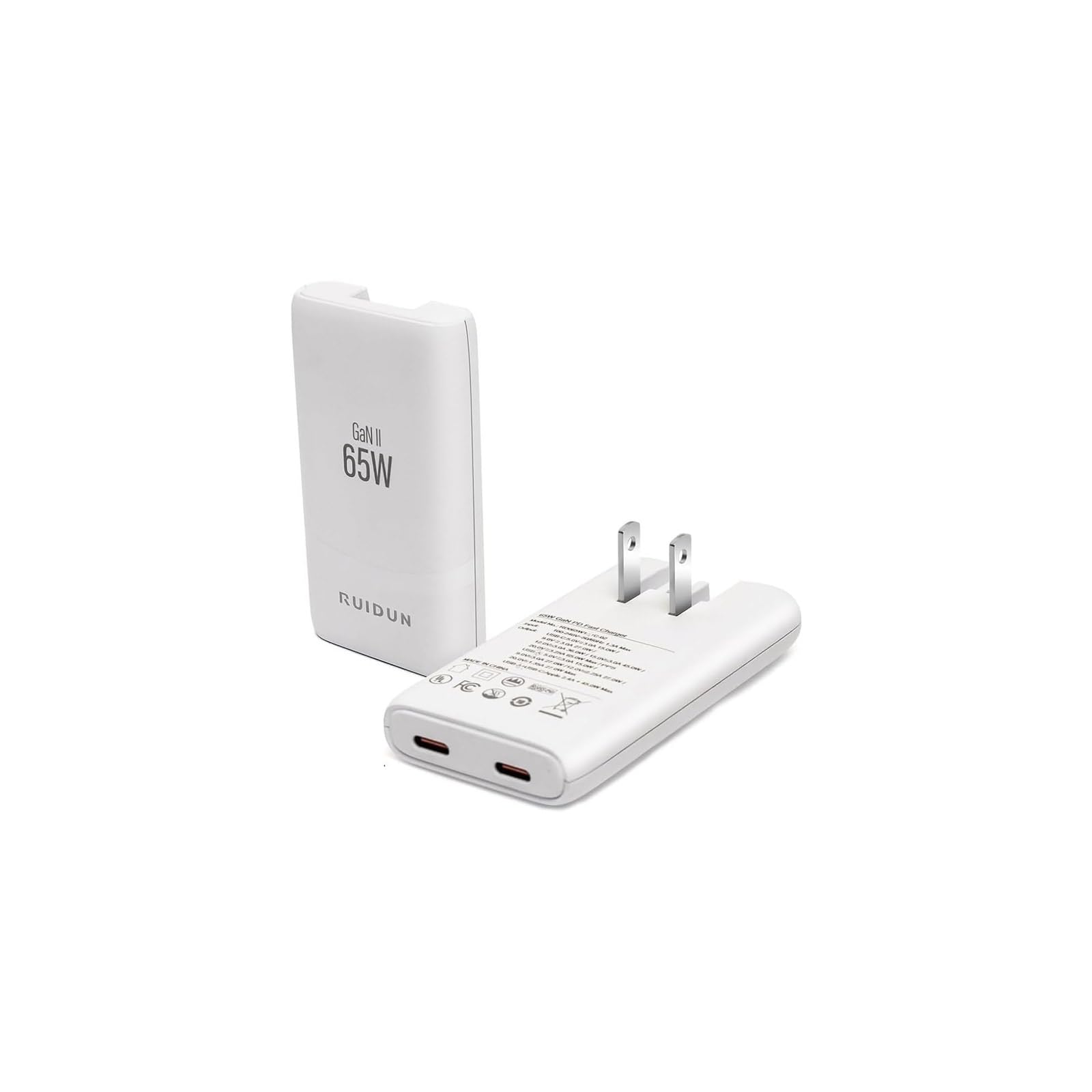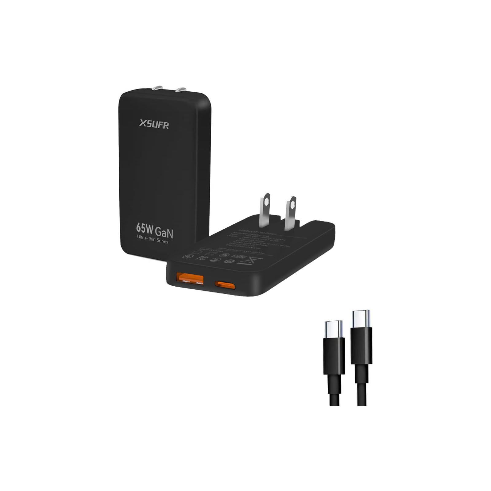 Cargador de pared USB C plano de 65 W, cargador de pared plegable de doble puerto USB GaN, carga rápida con PPS para portátiles, t