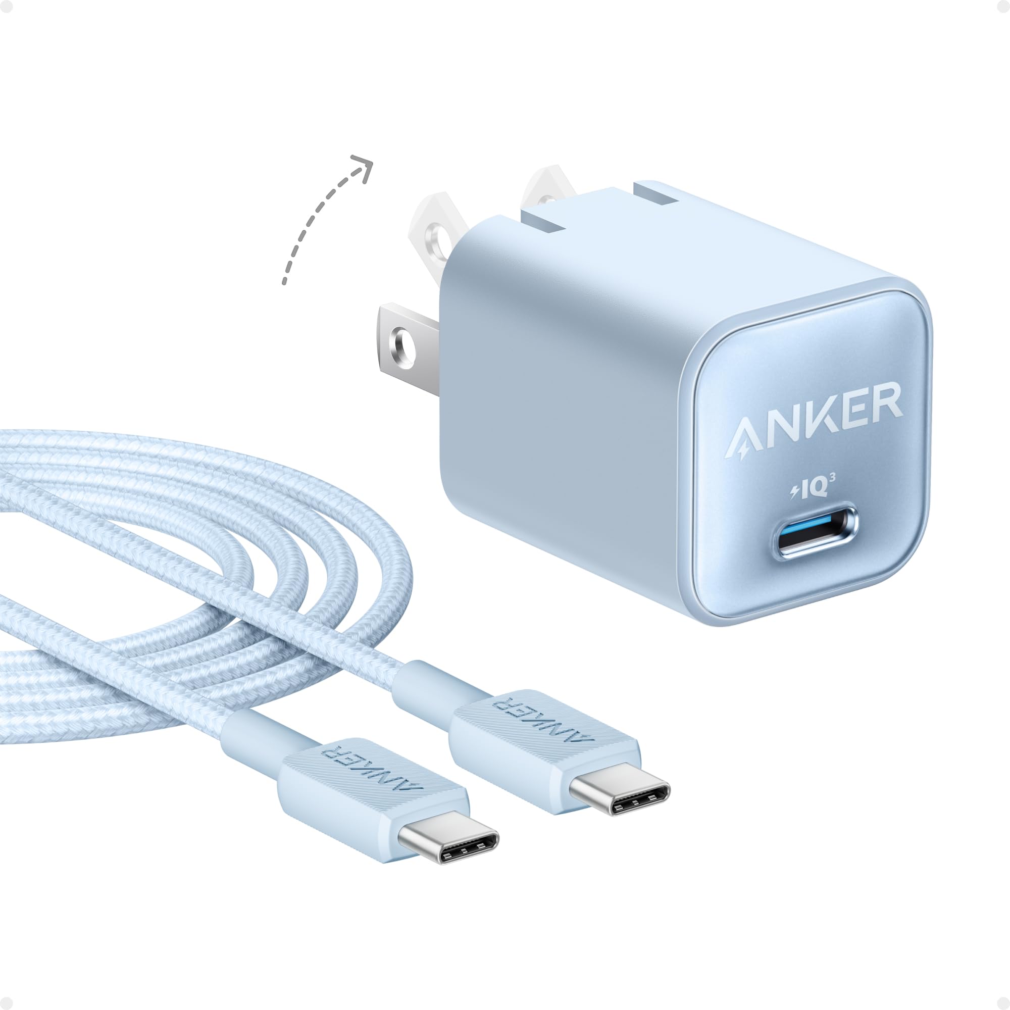Anker Cargador nano, cargador USB C GaN de 30 W, PIQ 3.0 plegable PPS cargador rápido para iPhone 16/15 y más series, Galaxy, iPad