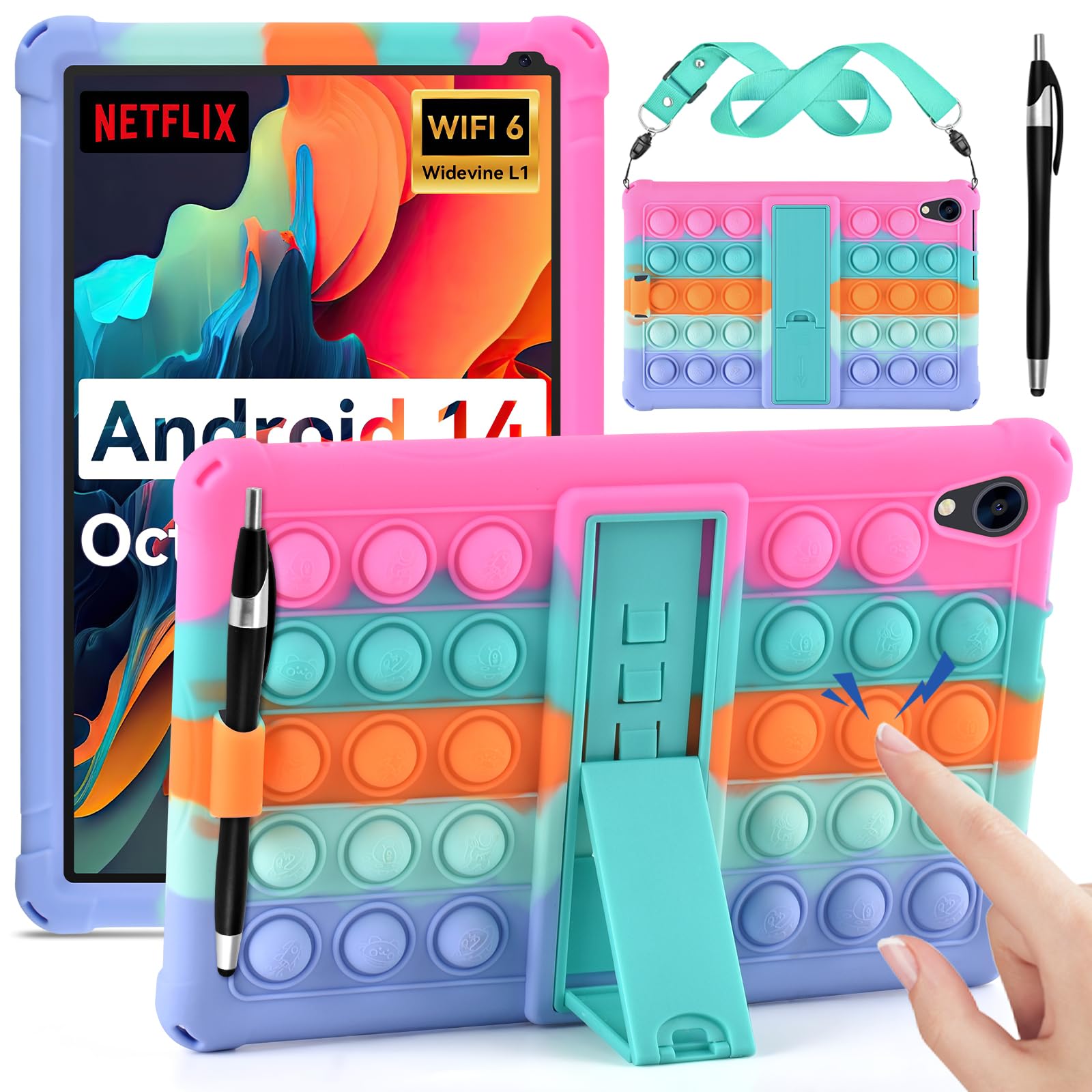 DETUOSI JEAZANS OC101/C107 – Funda de silicona suave multiángulo compatible con tablet Urao C107 de 10.1 pulgadas, con lápiz capac