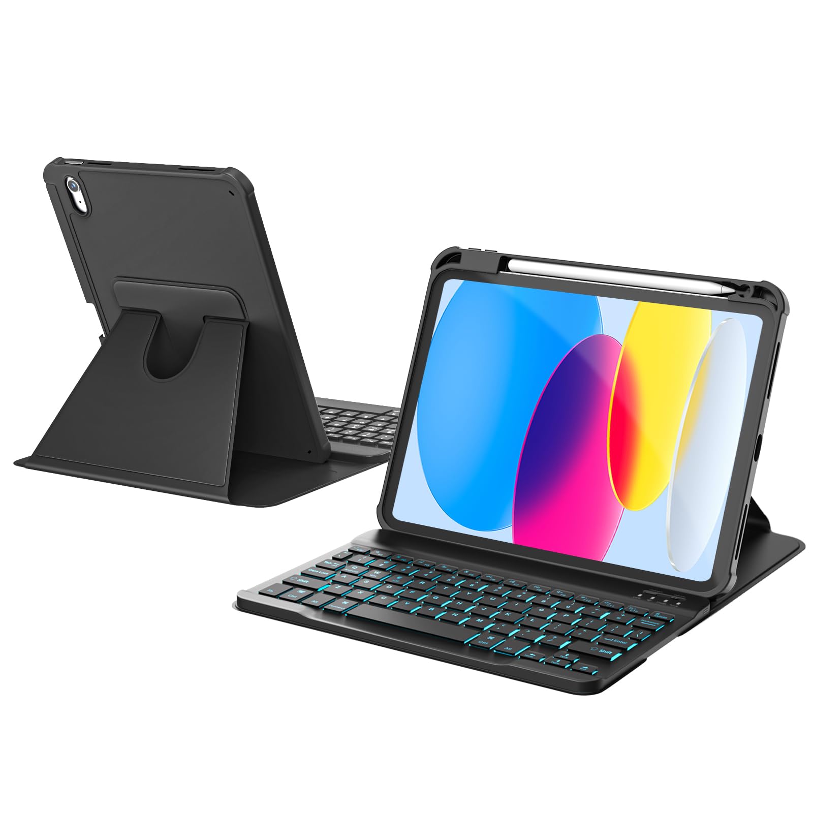Funda para iPad de 11ª (A16, 2025)/10ª generación con teclado, funda giratoria de 360° y teclado retroiluminado desmontable, recor