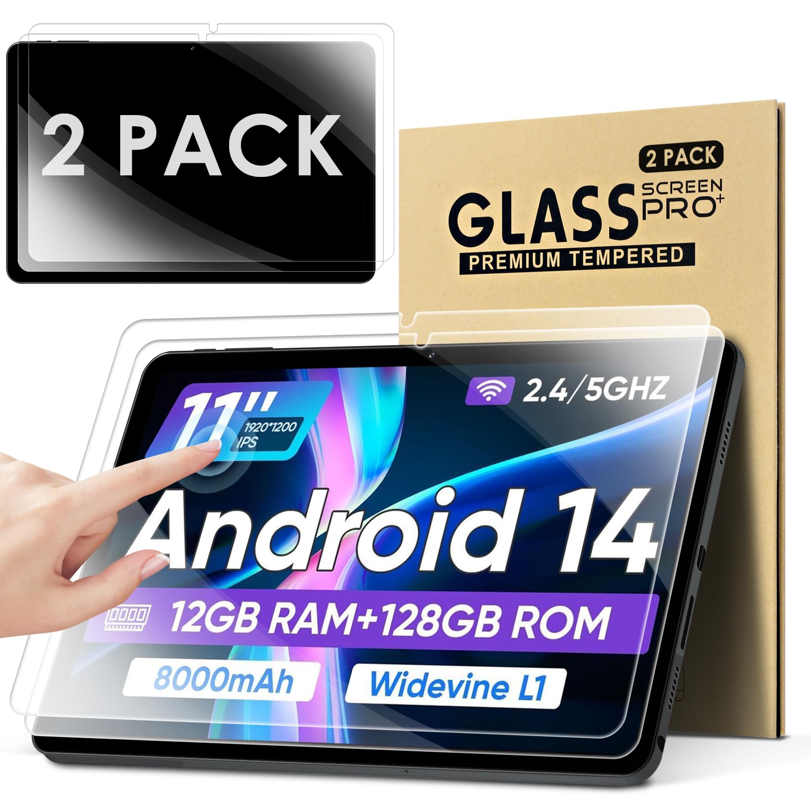 DETUOSI Paquete de 2 protectores de pantalla para tableta ECOPAD E20 Android 14 de 11 pulgadas, ultra transparente, compatible con