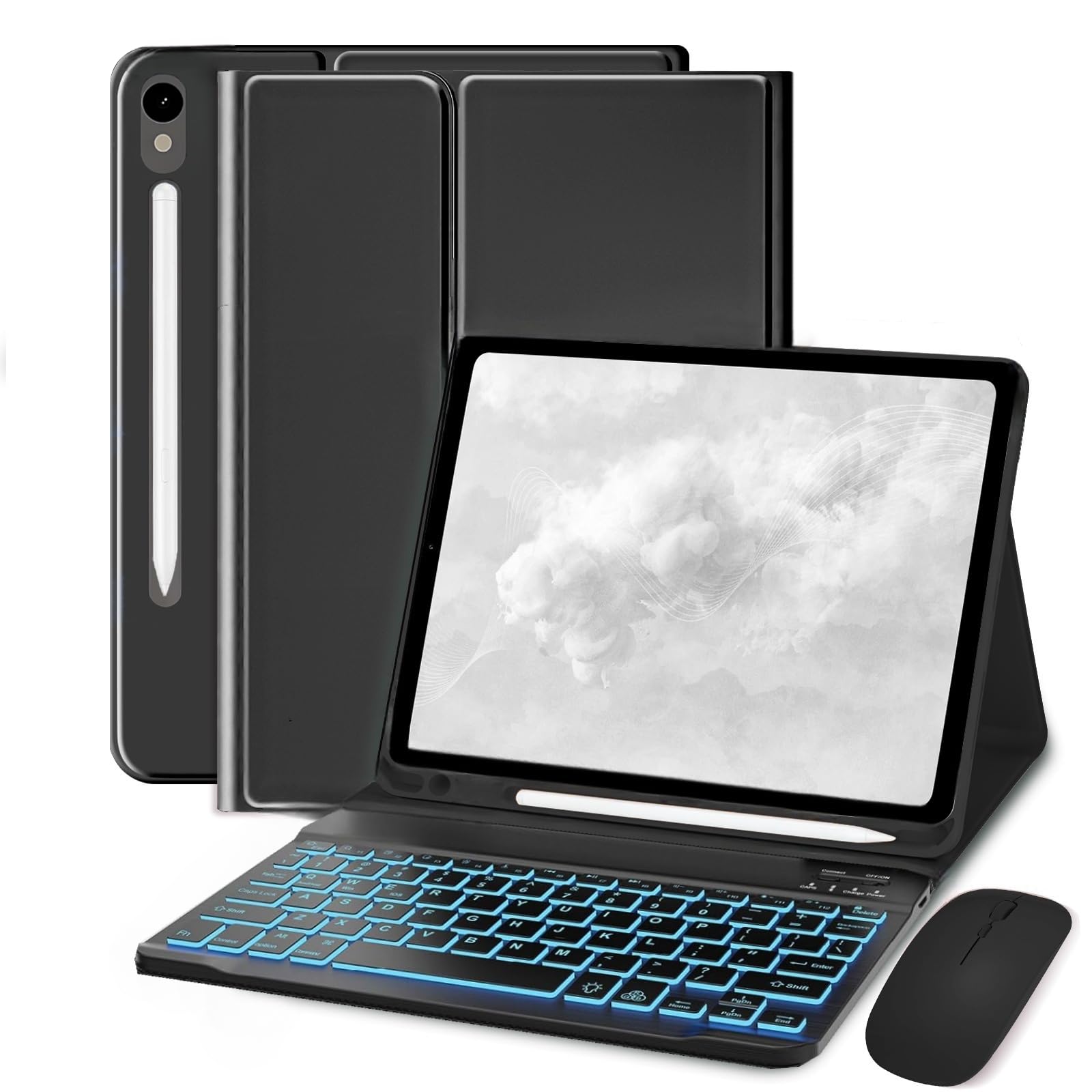 Funda de teclado para Samsung Galaxy Tab S10 FE y S9 FE de 10.9 pulgadas, Tab S9, S8 y S7 de 11 pulgadas, retroiluminación de 7 co