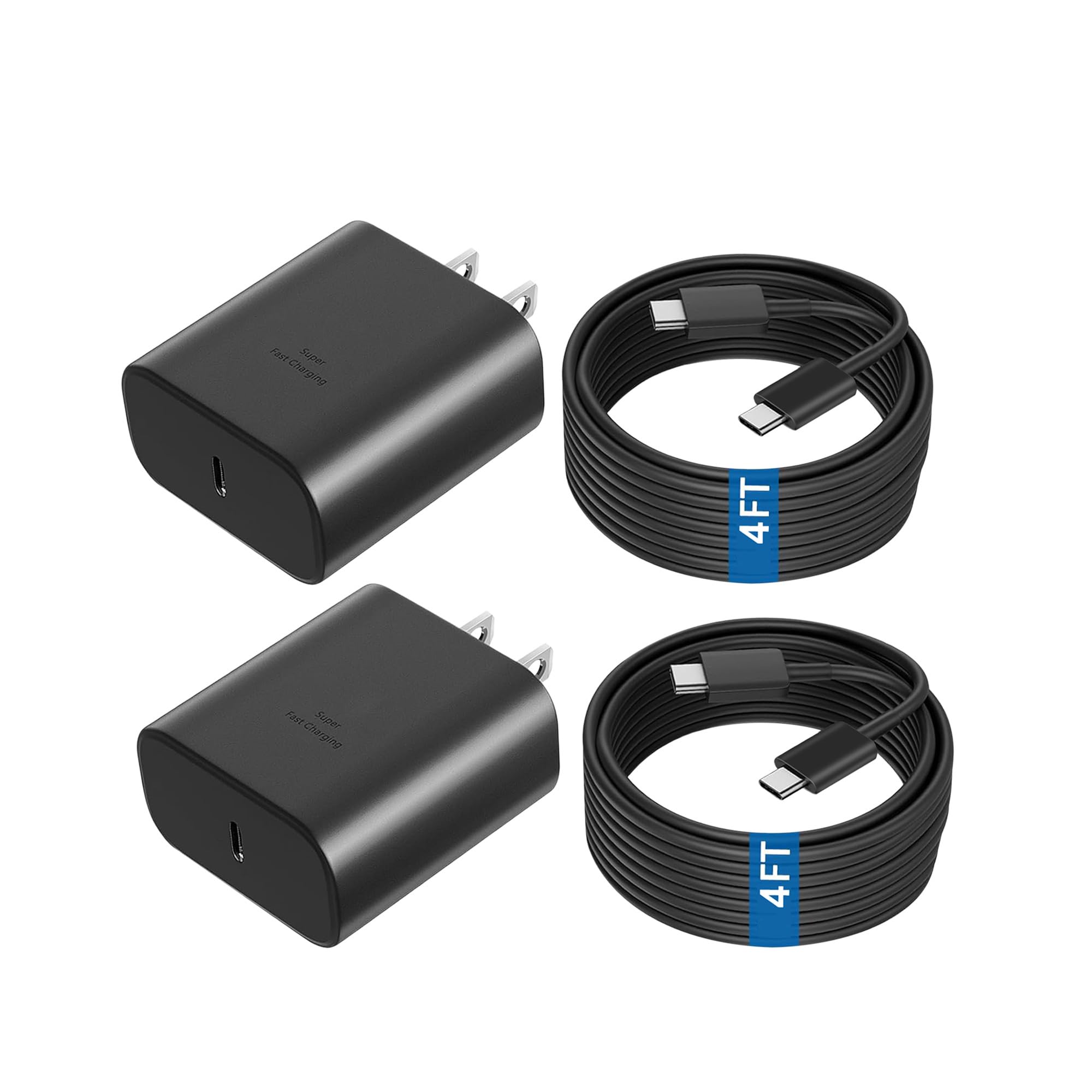 Paquete de 2 cargadores súper rápidos tipo C, cargador de pared de 45 vatios USB c con cable de carga tipo C de 4 pies para Samsun