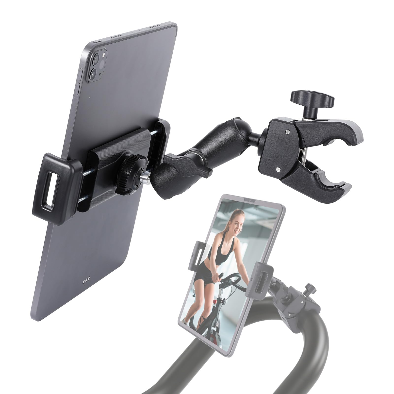 Soporte para tableta para cinta de correr, bicicleta giratoria, cochecito, silla de ruedas, carrito de golf, postes, soporte de mú