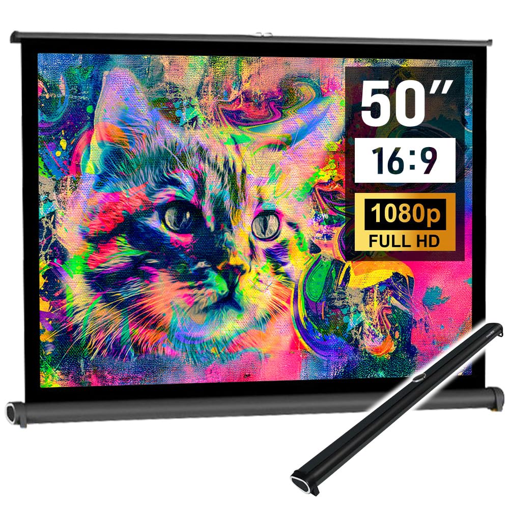 Pantalla de proyector portátil móvil de 50 pulgadas, pantalla de proyector 16:9, soporte de trípode retráctil para cine en casa, s