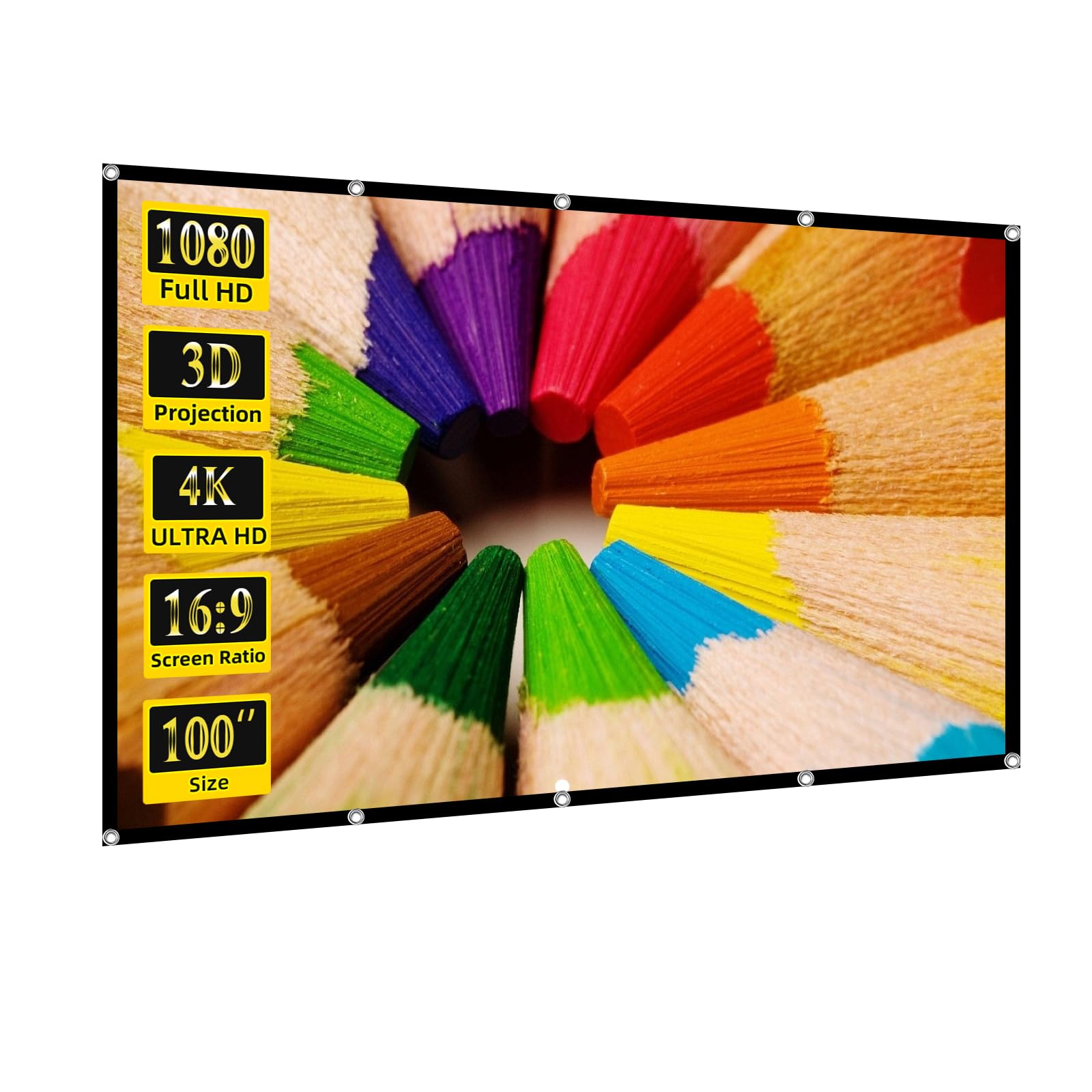 TOWOND Pantalla de proyector portátil de 100 pulgadas, sin arrugas, ganchos y cuerdas, plegable, ángulo de visión amplio de 160°