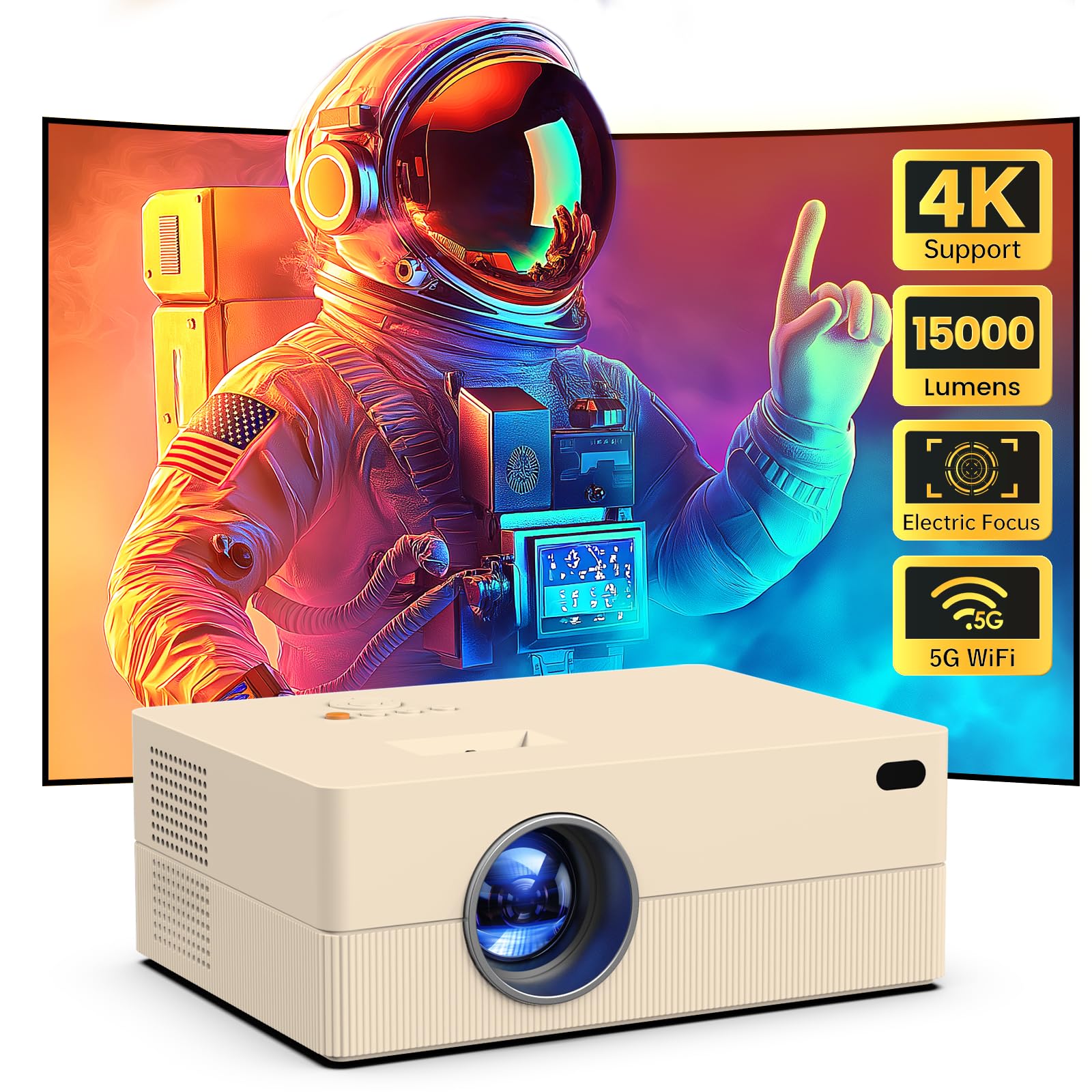 Proyector con WiFi y Bluetooth, pantalla | Native 1080P, proyector 5G portátil para exteriores, sin retrasos, compatible con iPhon