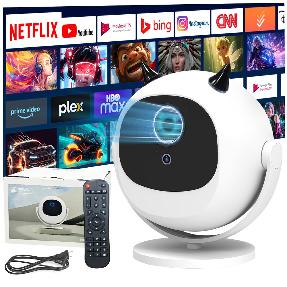 Aurzen BOOM Mini Proyector inteligente compatible con Google TV 4K con WiFi y Bluetooth, proyector de películas para exteriores y