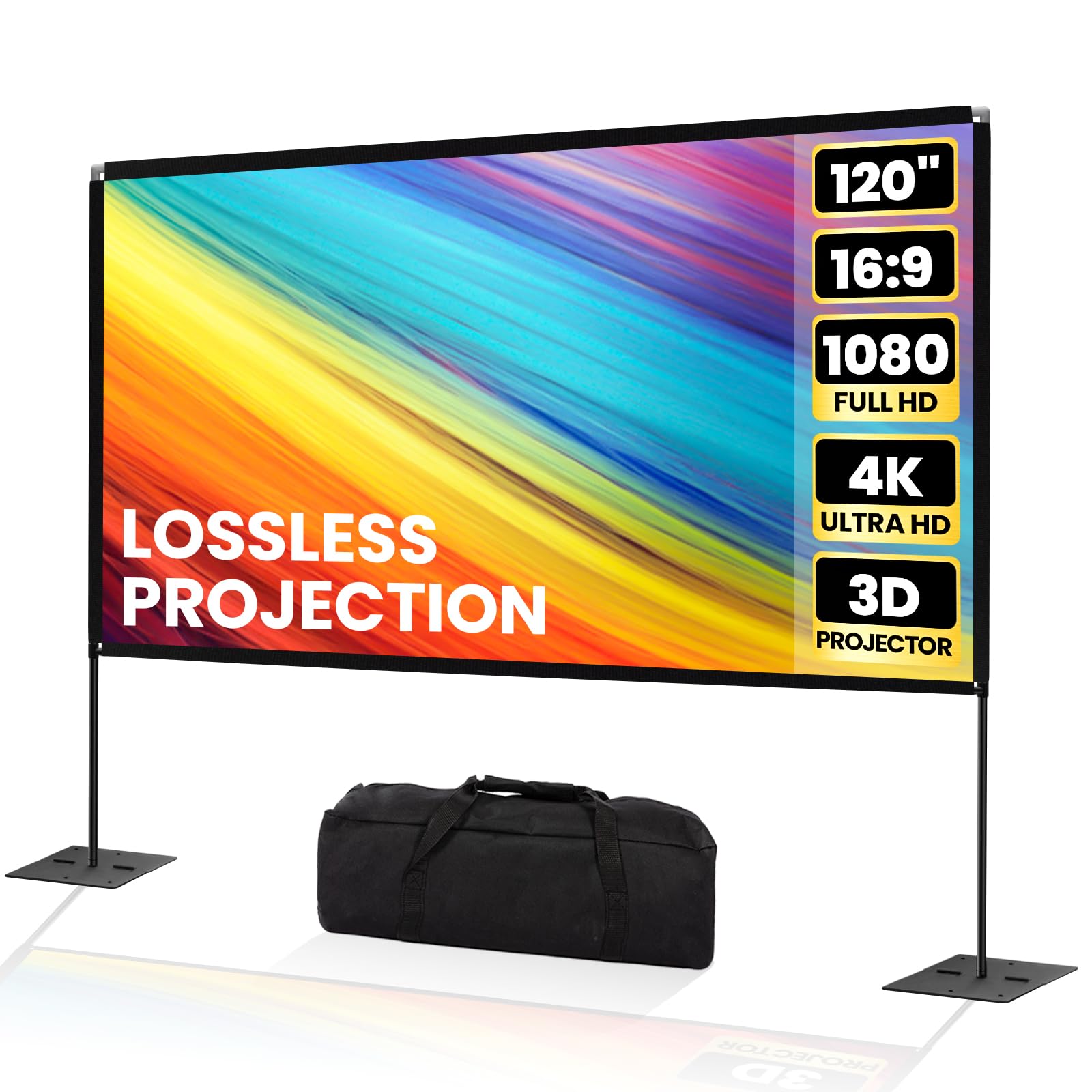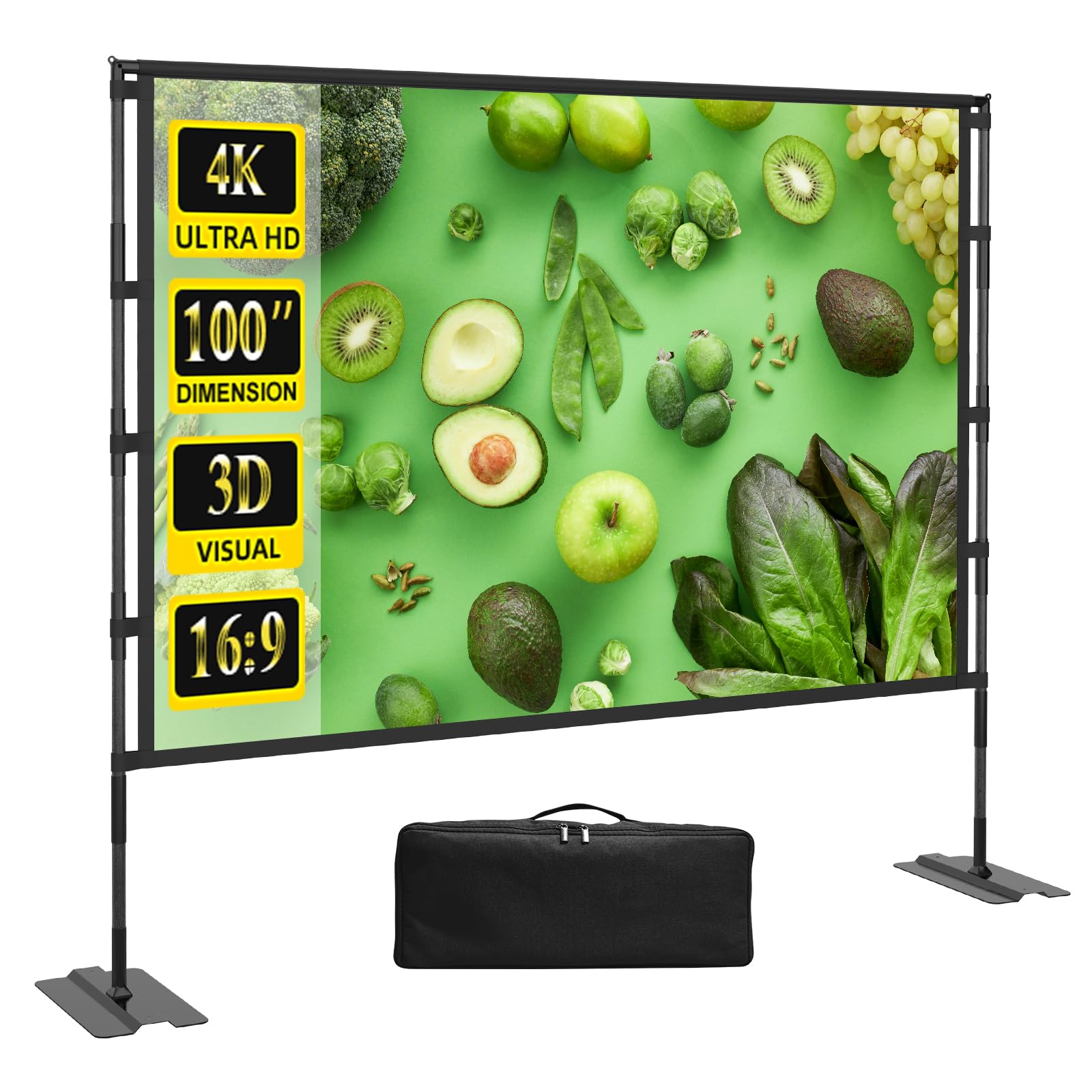 KHOMO GEAR Pantalla de proyector portátil, pantalla de proyector de 100 pulgadas con soporte, pantalla de proyector para exteriore