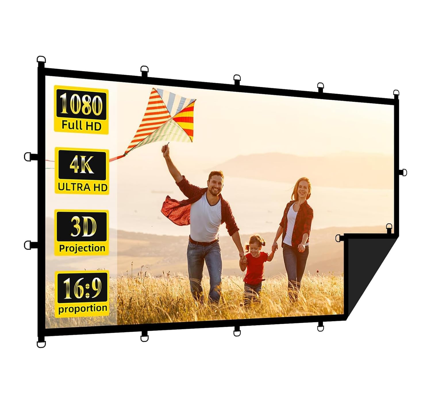 TOWOND – Pantalla de proyector para exteriores con soporte, pantalla de proyección portátil de 200 pulgadas, pantalla de película