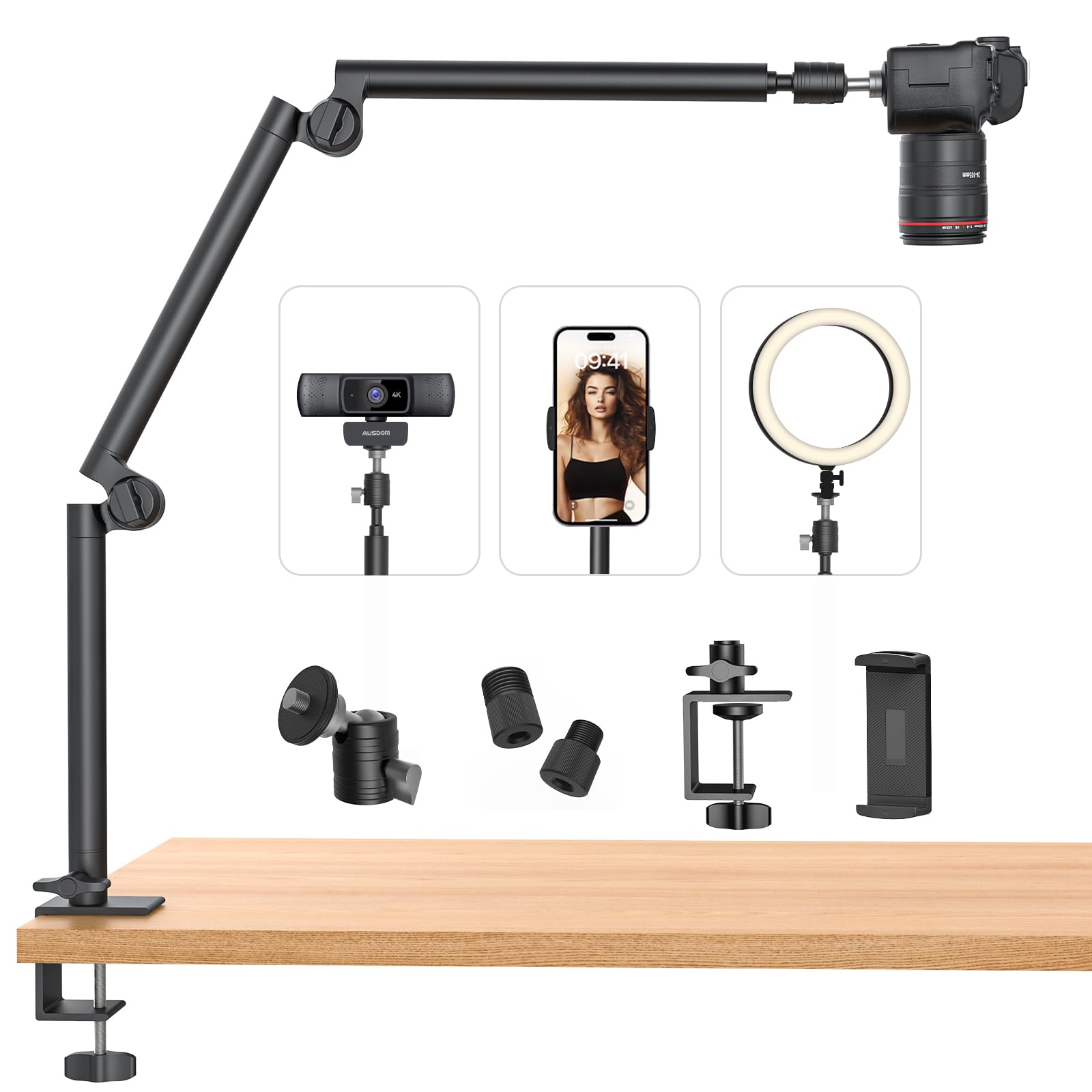Soporte de cámara web para mesa de escritorio de 31 pulgadas todo en 1: equipo de cámara DSLR con tornillo de 1/4 pulgadas, 3/8 pu