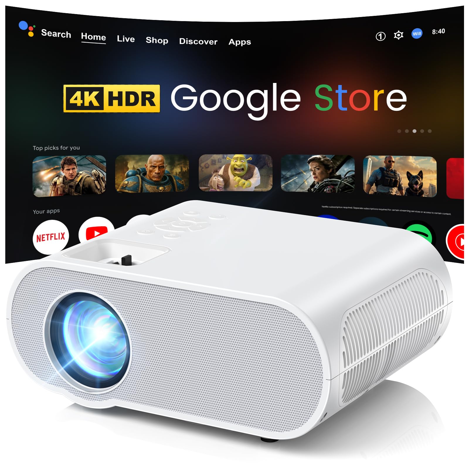 Proyector Google TV, proyector HOMPOW HD 4K con WiFi y Bluetooth, proyector para exteriores con licencia oficial de Netflix, proye