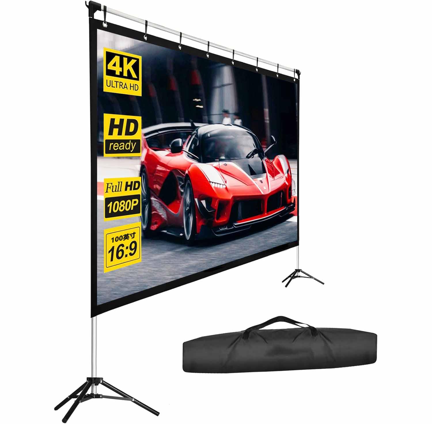 Pantalla de proyector con soporte de 108 pulgadas para interiores y exteriores, pantalla de proyección de películas de PVC de gana