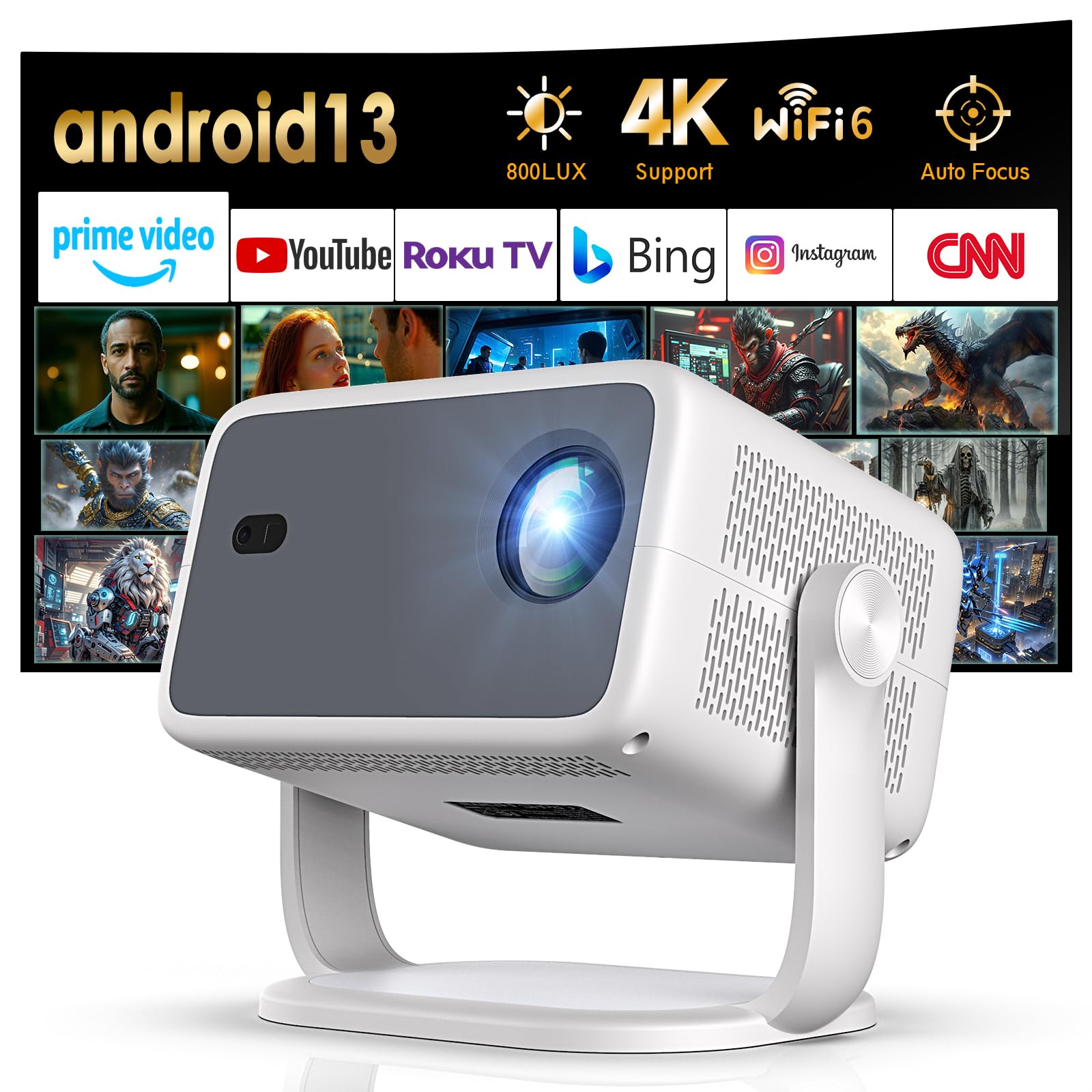 [600 ANSI/Netflix oficial/control de voz] Proyector inteligente para exteriores compatible con 4K con WiFi6 y Bluetooth, proyector
