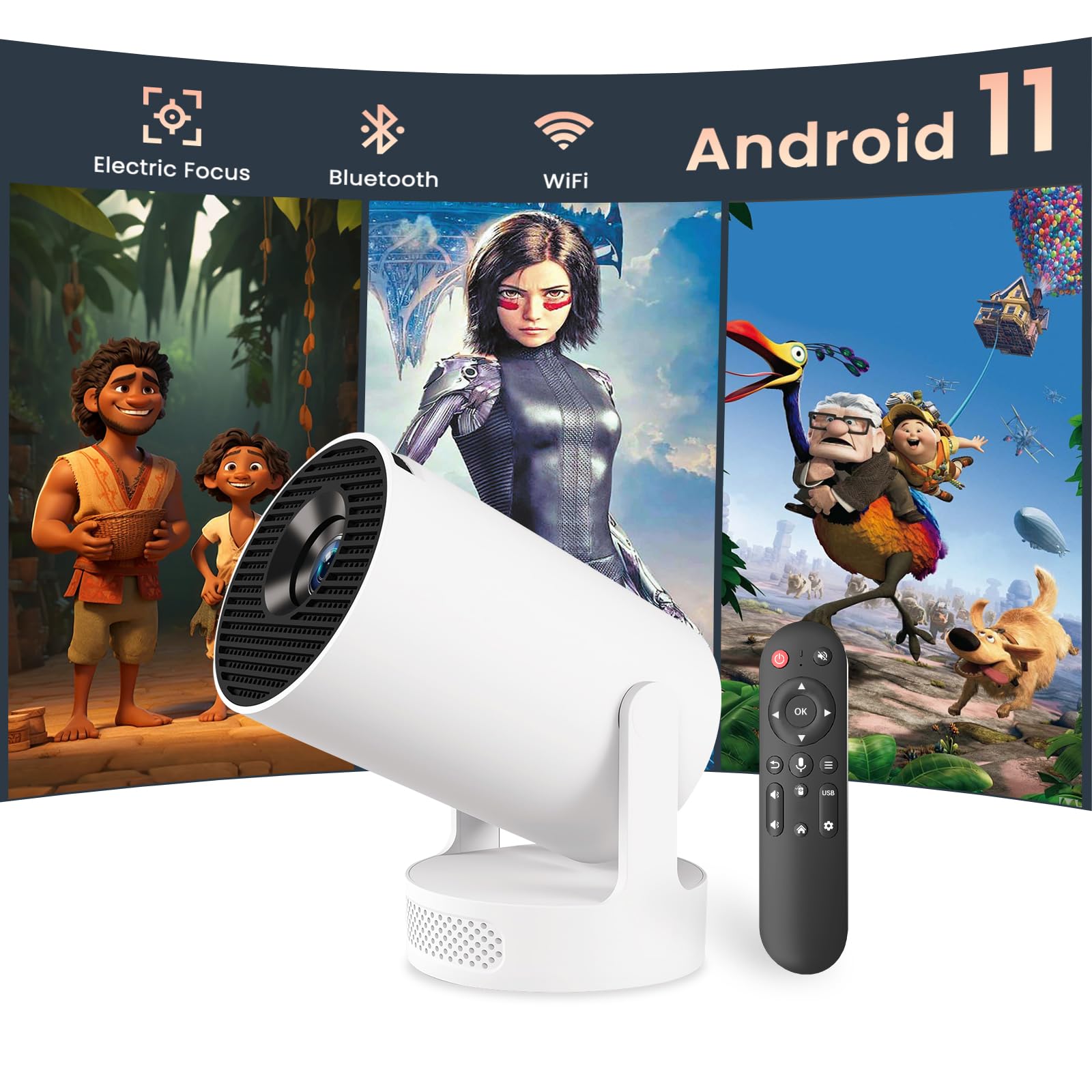 Mini proyector, proyector inteligente 4K mejorado con Wifi 6 y Bluetooth 5.4, proyector portátil con Android 11, corrección trapez