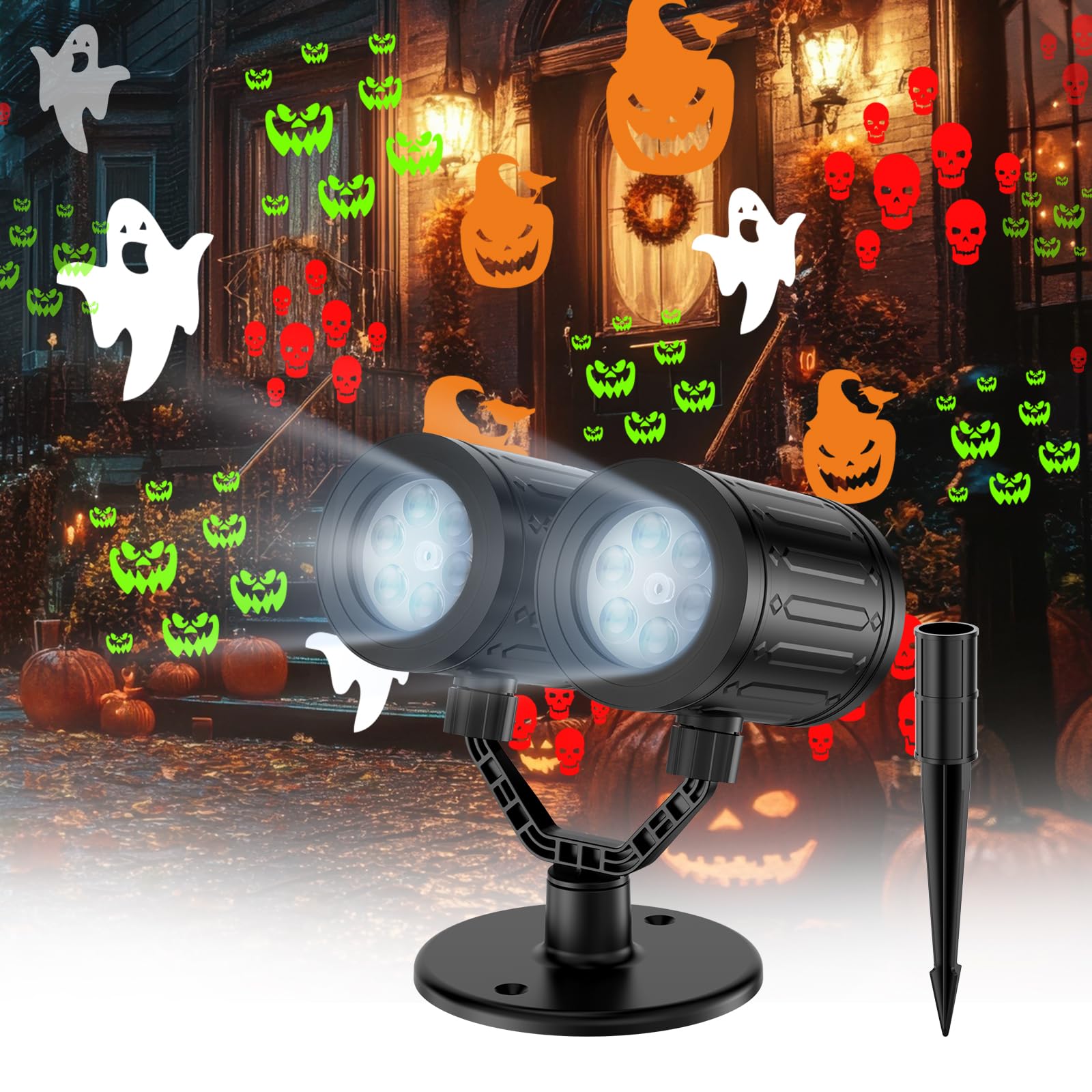 Halloween Projector Lights Outdoor,Double Head Led Lights Waterproof,Timer Setting Landscape Decorative Lighting Projection Lamp f