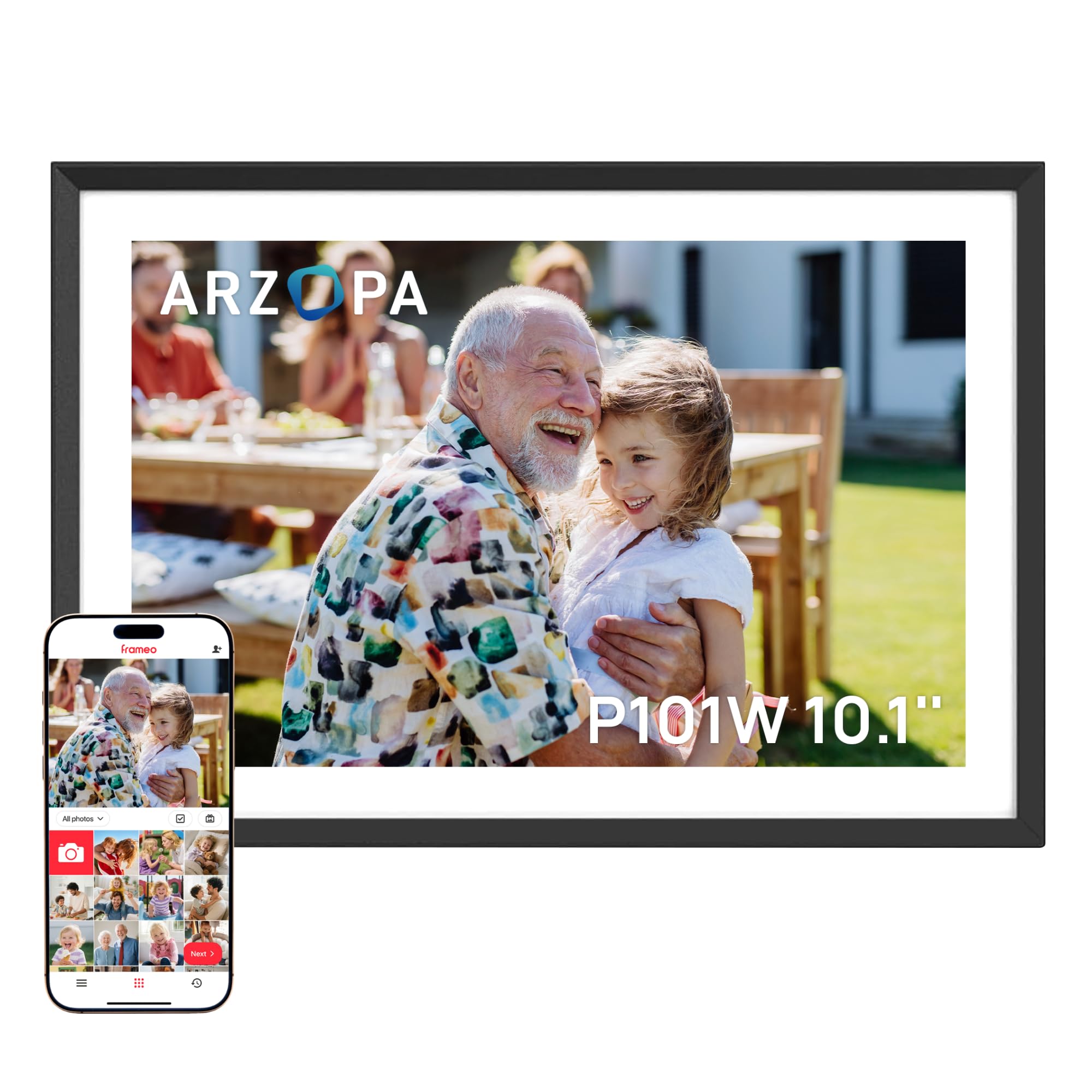 ARZOPA Frameo – Marco de fotos digital inteligente WiFi de 10.1 pulgadas, 32 GB con pantalla táctil IPS de 1280 x 800, rotación au